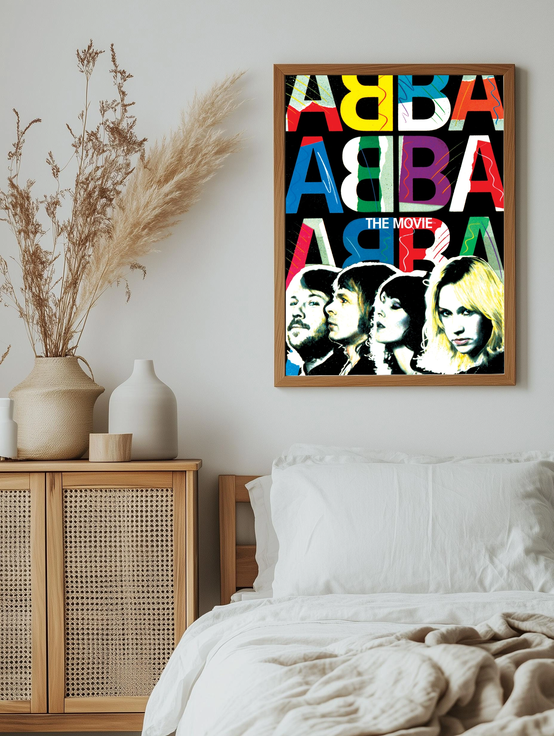Яркая картина для гостиной с изображением участников легендарной шведской группы ABBA на фоне крупного стилизованного логотипа. Интенсивные цвета, динамичные линии и винтажная эстетика 70-х создают атмосферу музыкального вдохновения. Идеально как интерьерное искусство и декоративный плакат для любителей музыки и стиля ретро.