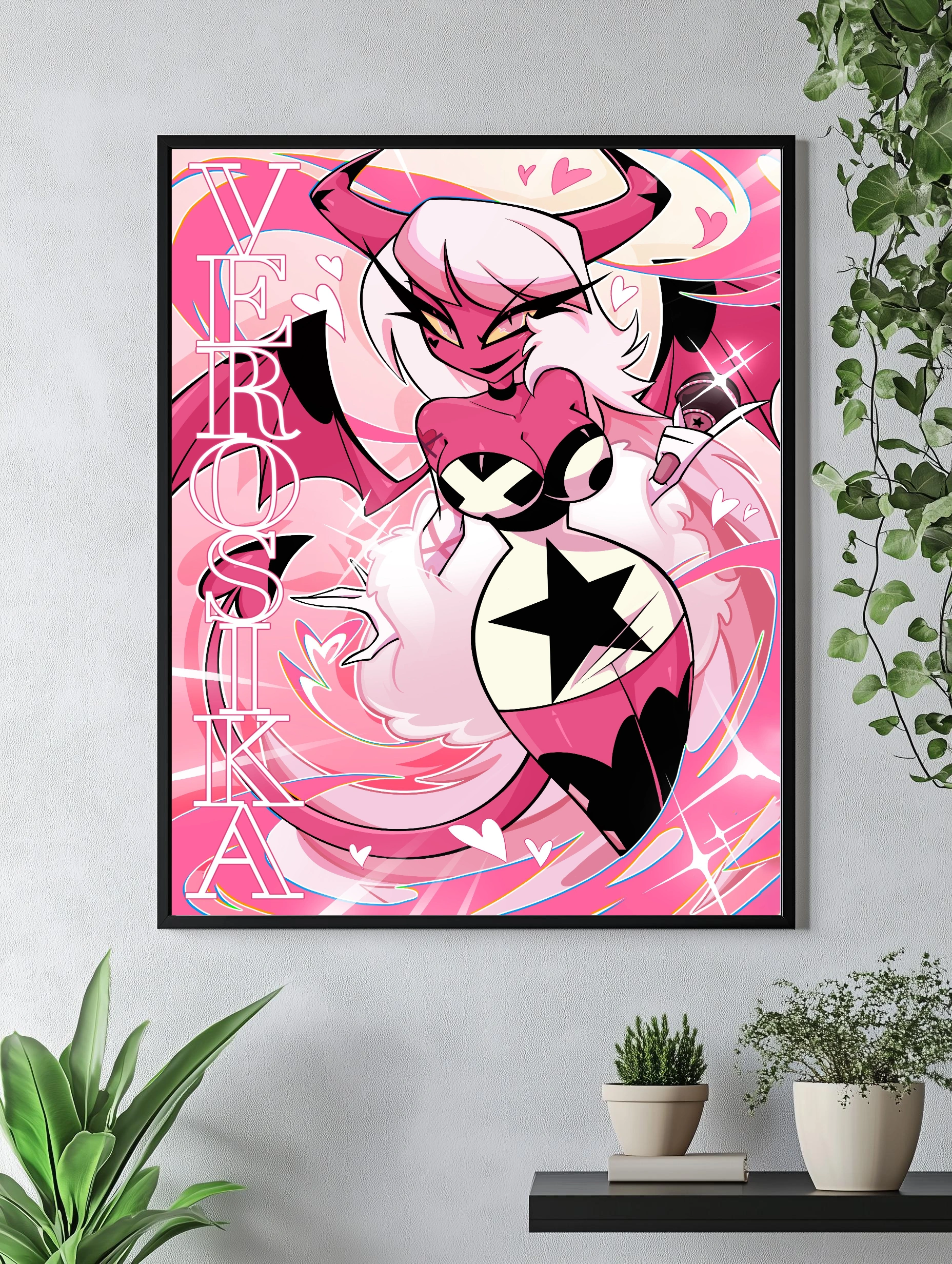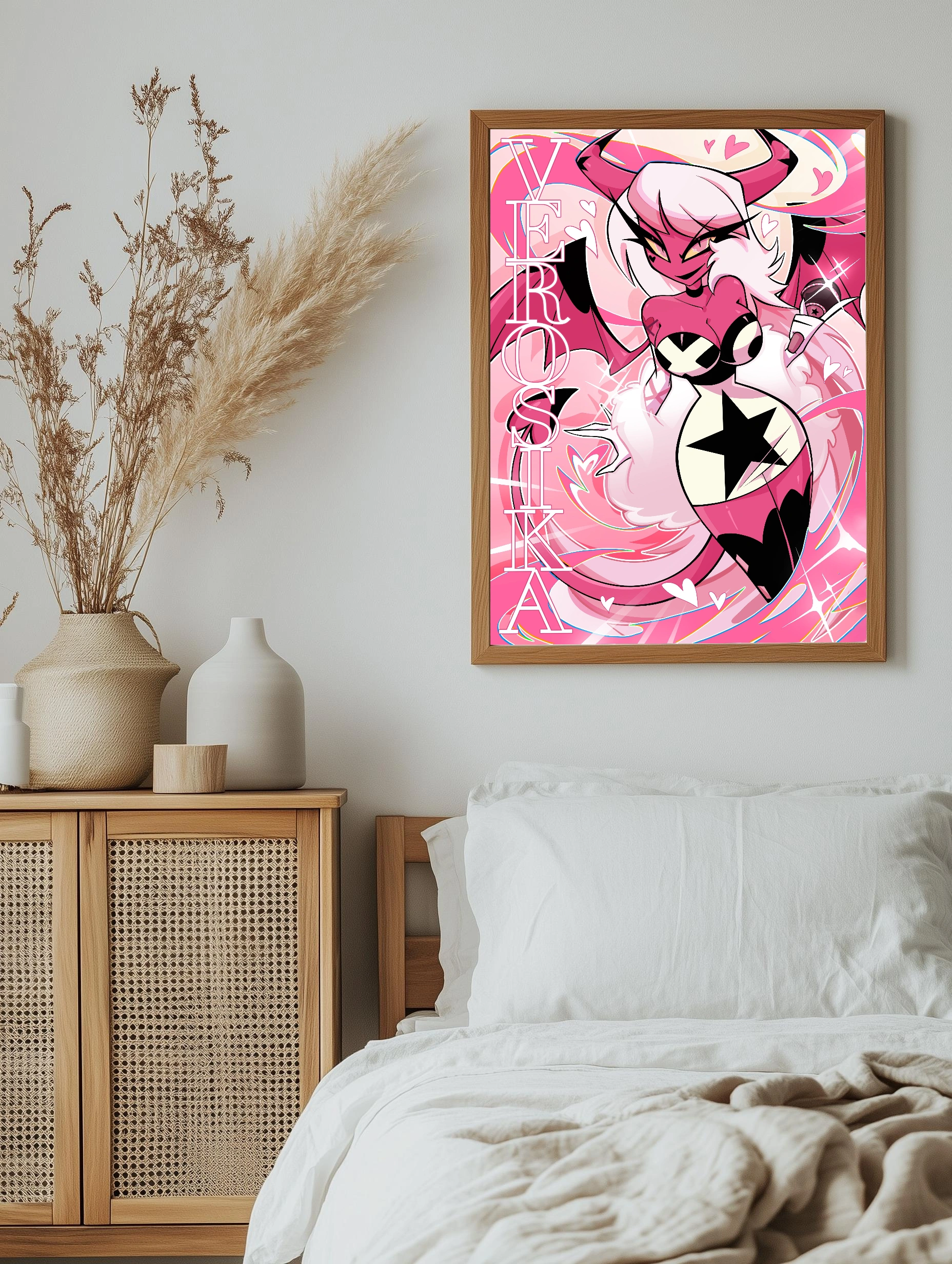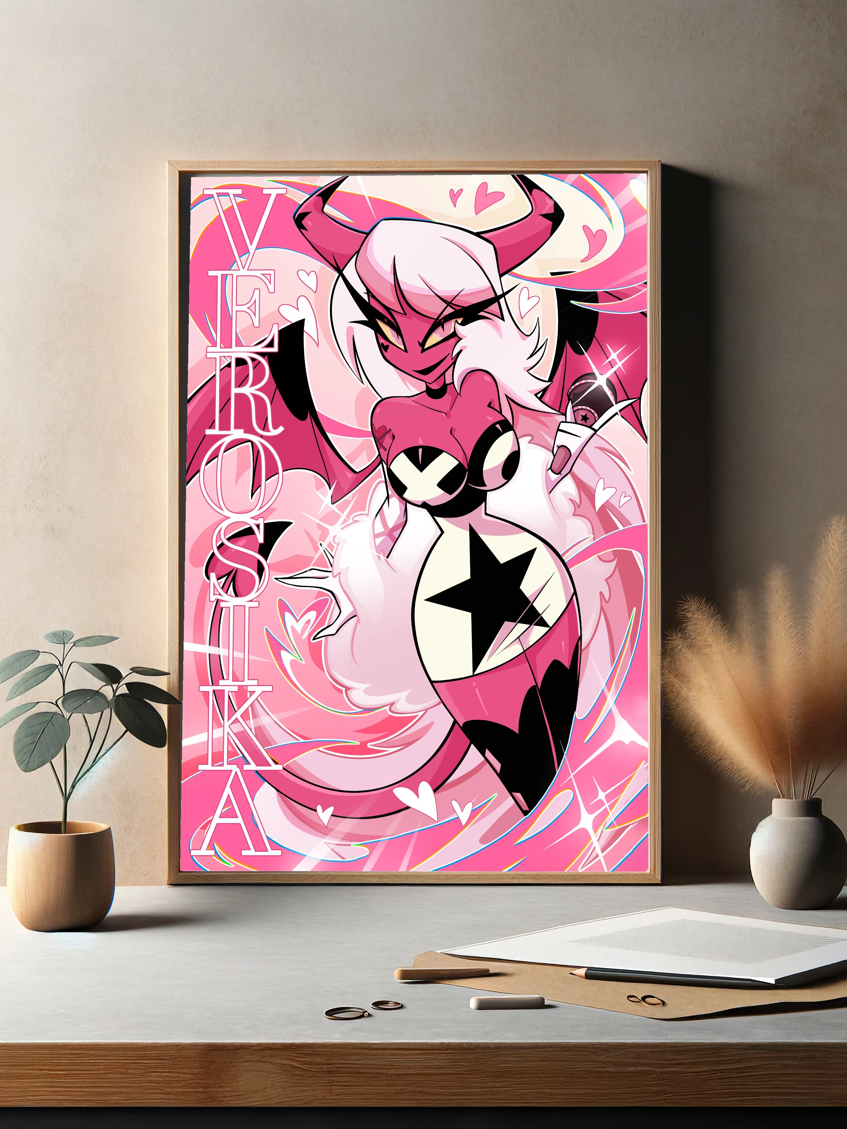 Яркая картина с изображением персонажа Вероcтики в динамичном стиле аниме с преобладанием розовых и черных оттенков. Декоративный плакат подойдет для спальни, гостиной или офиса, добавит современное искусство для стен и стильный декор. Уникальные картины для дома с выразительным дизайном и характером.