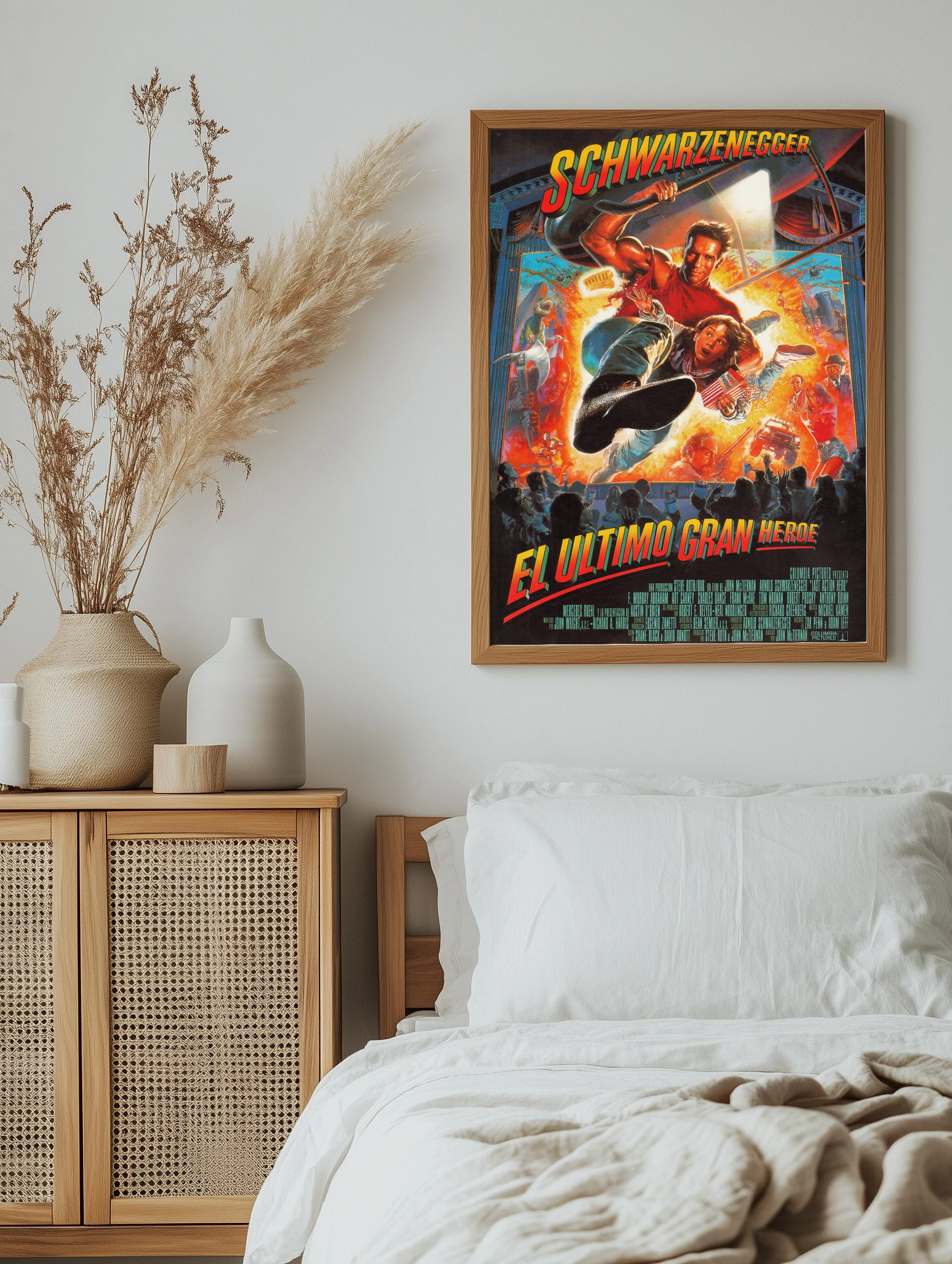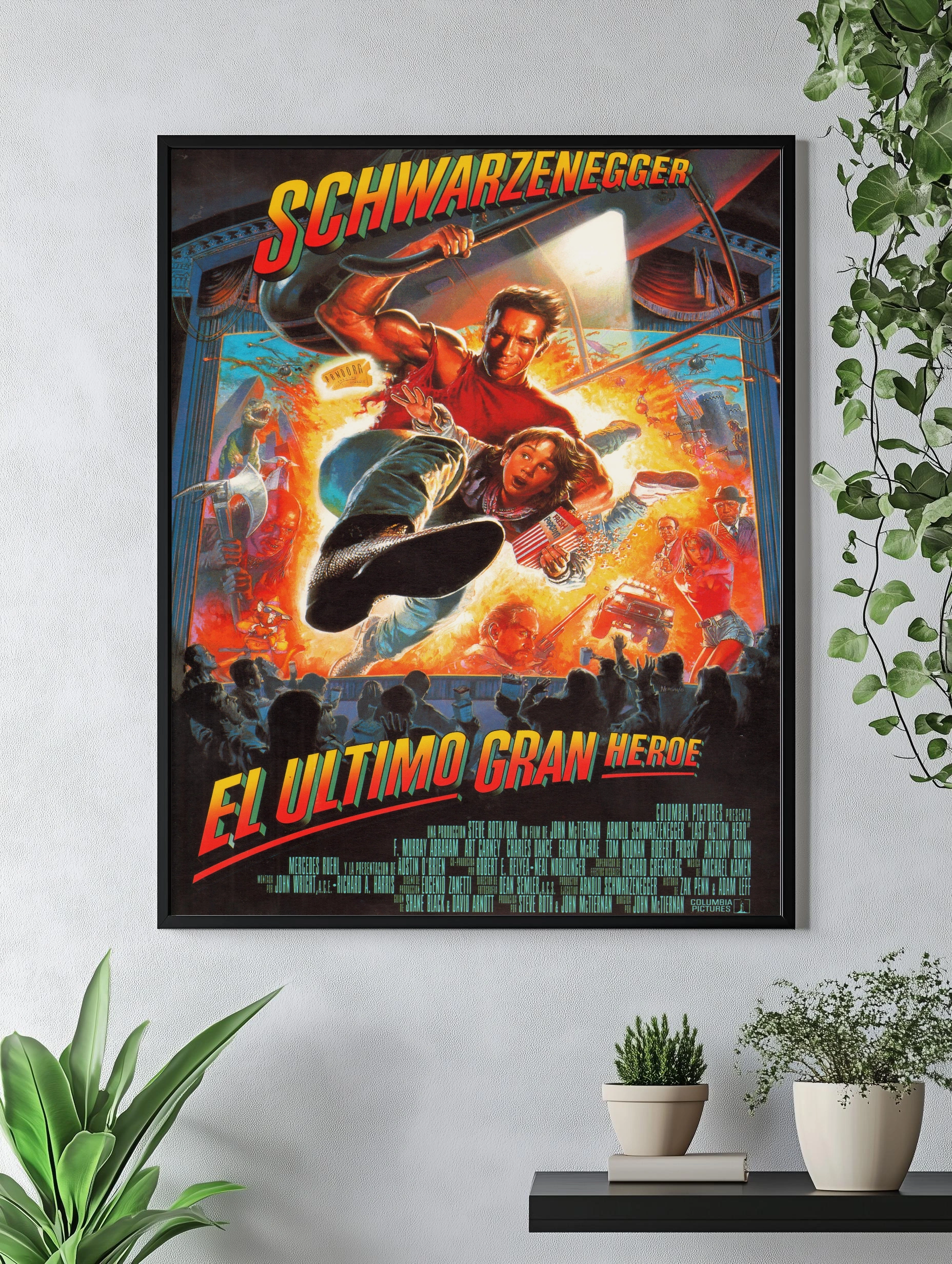 Яркий и динамичный классический киноафишный дизайн с Арнольдом Шварценеггером в центре внимания. Изображение наполнено драматизмом, действиями и зрелищными спецэффектами, сочетающими красный, оранжевый и чёрный цвета. Отличный интерьерный декор для поклонников боевиков и ретро кино.