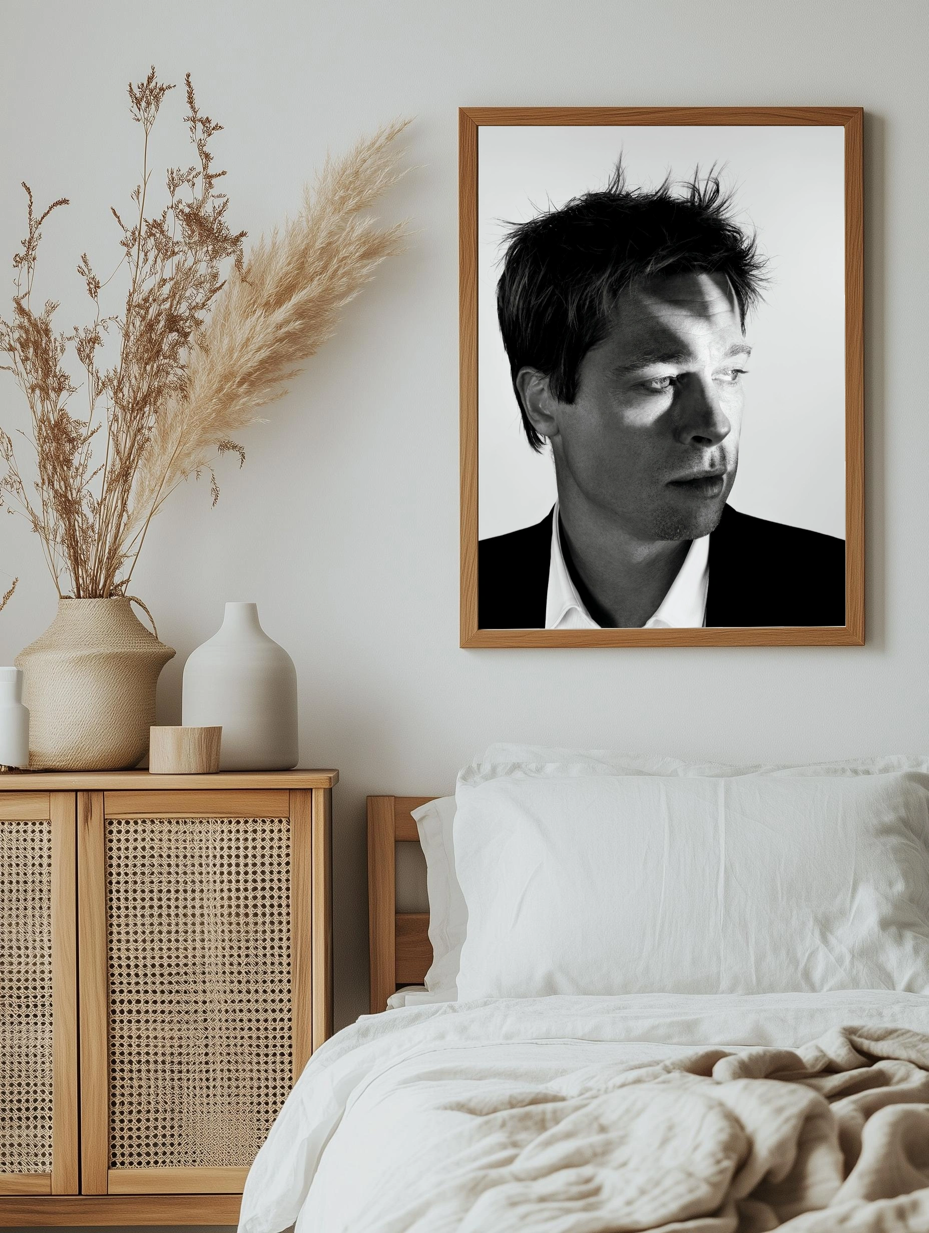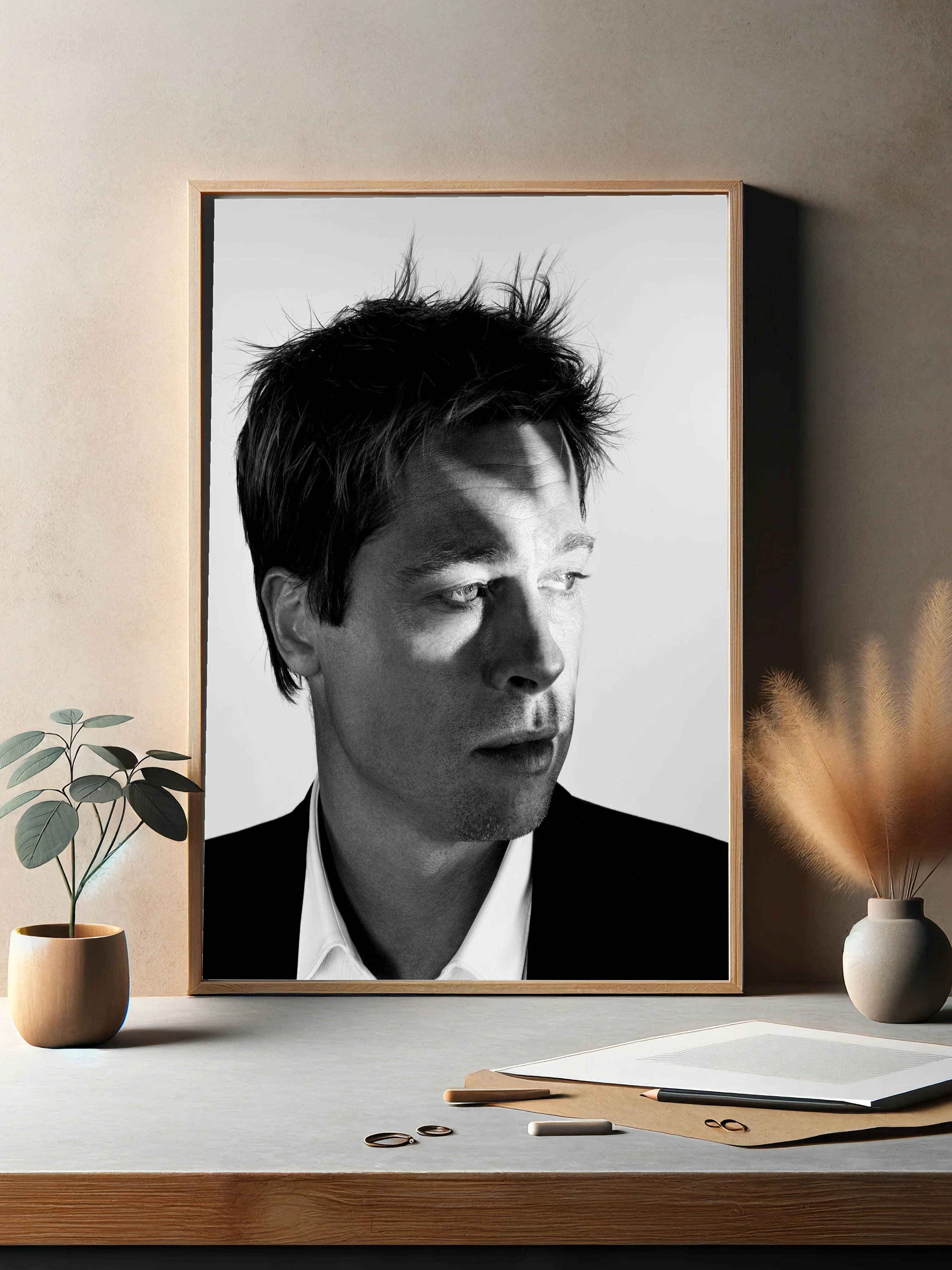 Чёрно-белая художественная картина с детальным портретом мужчины в профиль. Изображение отличается контрастным светотеневым эффектом, подчёркивающим черты лица. Идеально подходит как интерьерный арт для гостиной или спальни, создавая стильный и современный настенный декор.