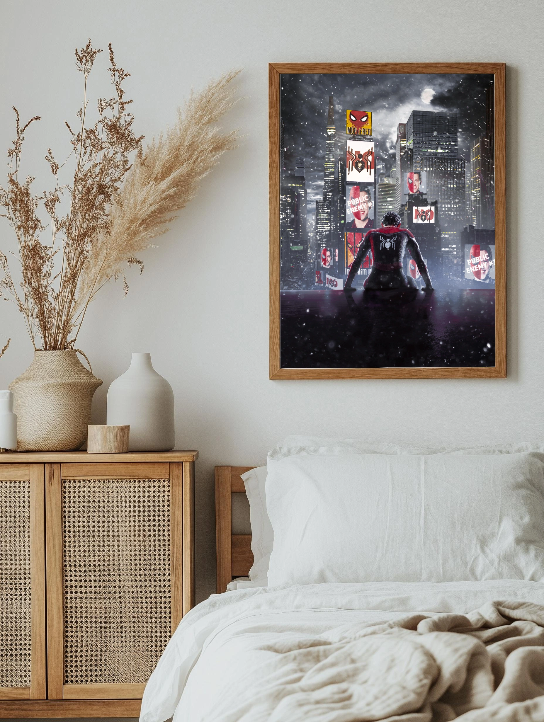 На фото сам постер уже под защитной пленкой рамки, потому чуть замыливает прекрасное качество печати . И в рамке есть небольшая "волна" холста. Исправлю позже))