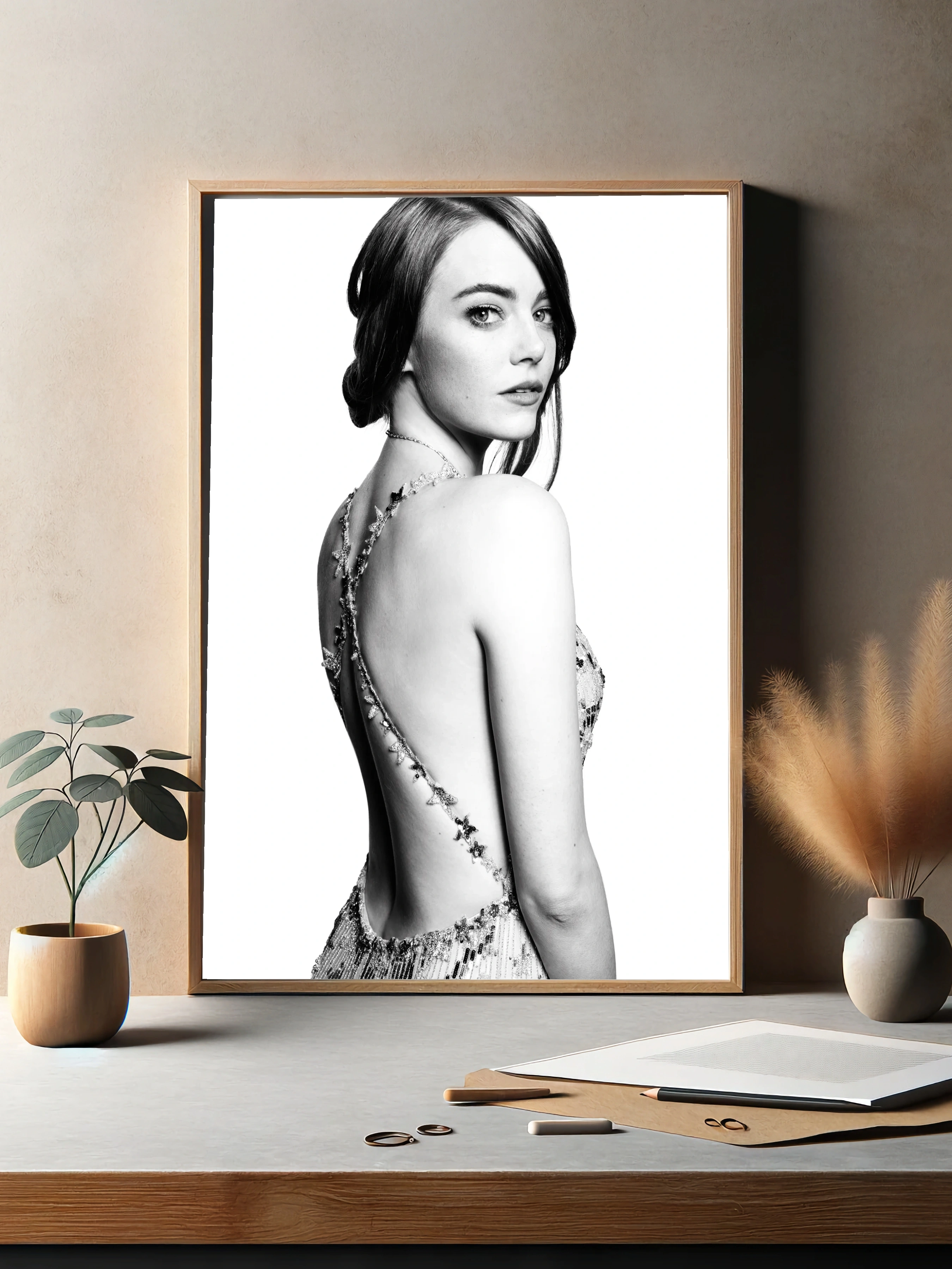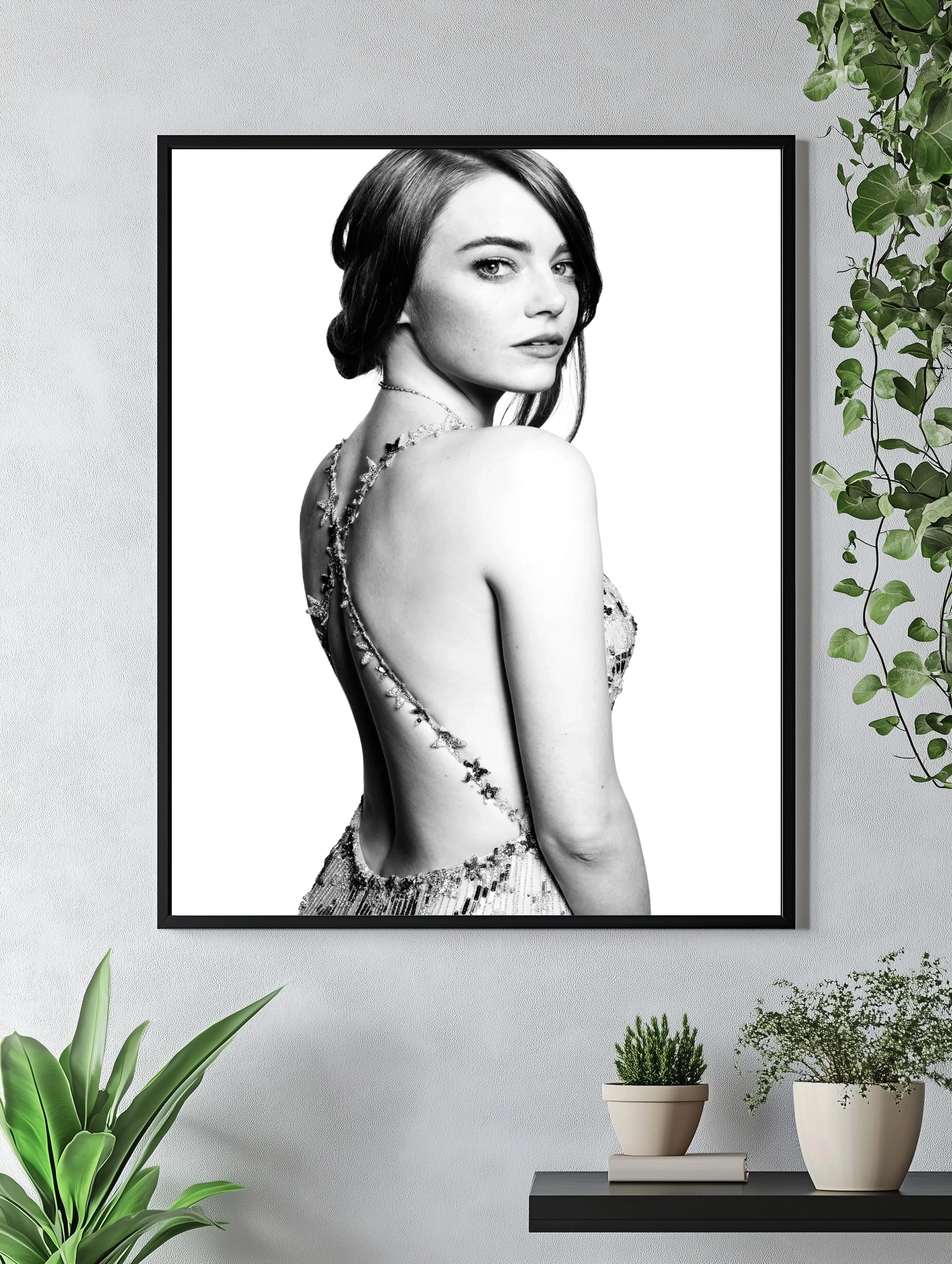 Черно-белый портрет Эммы Стоун в вечернем платье - 3