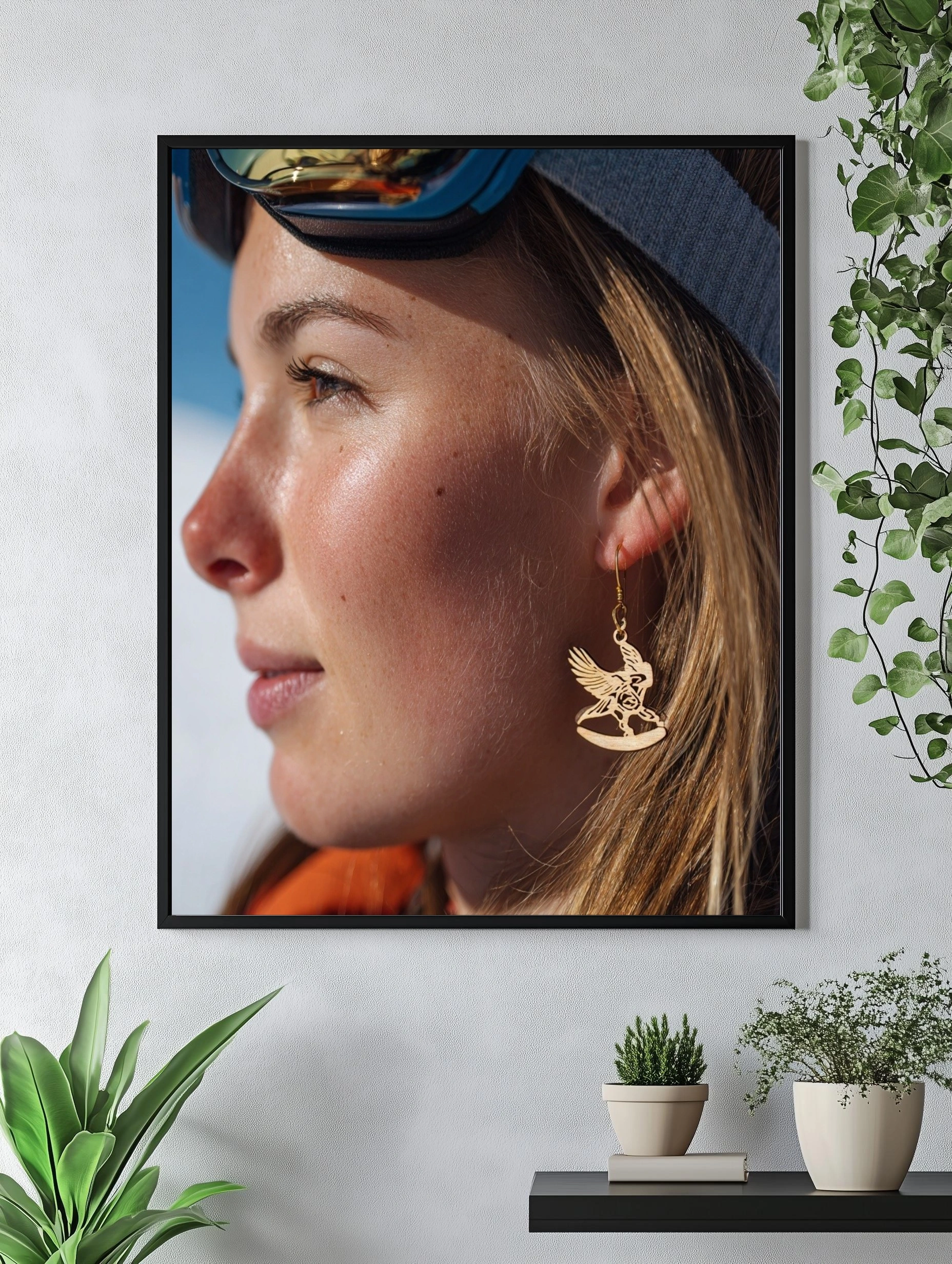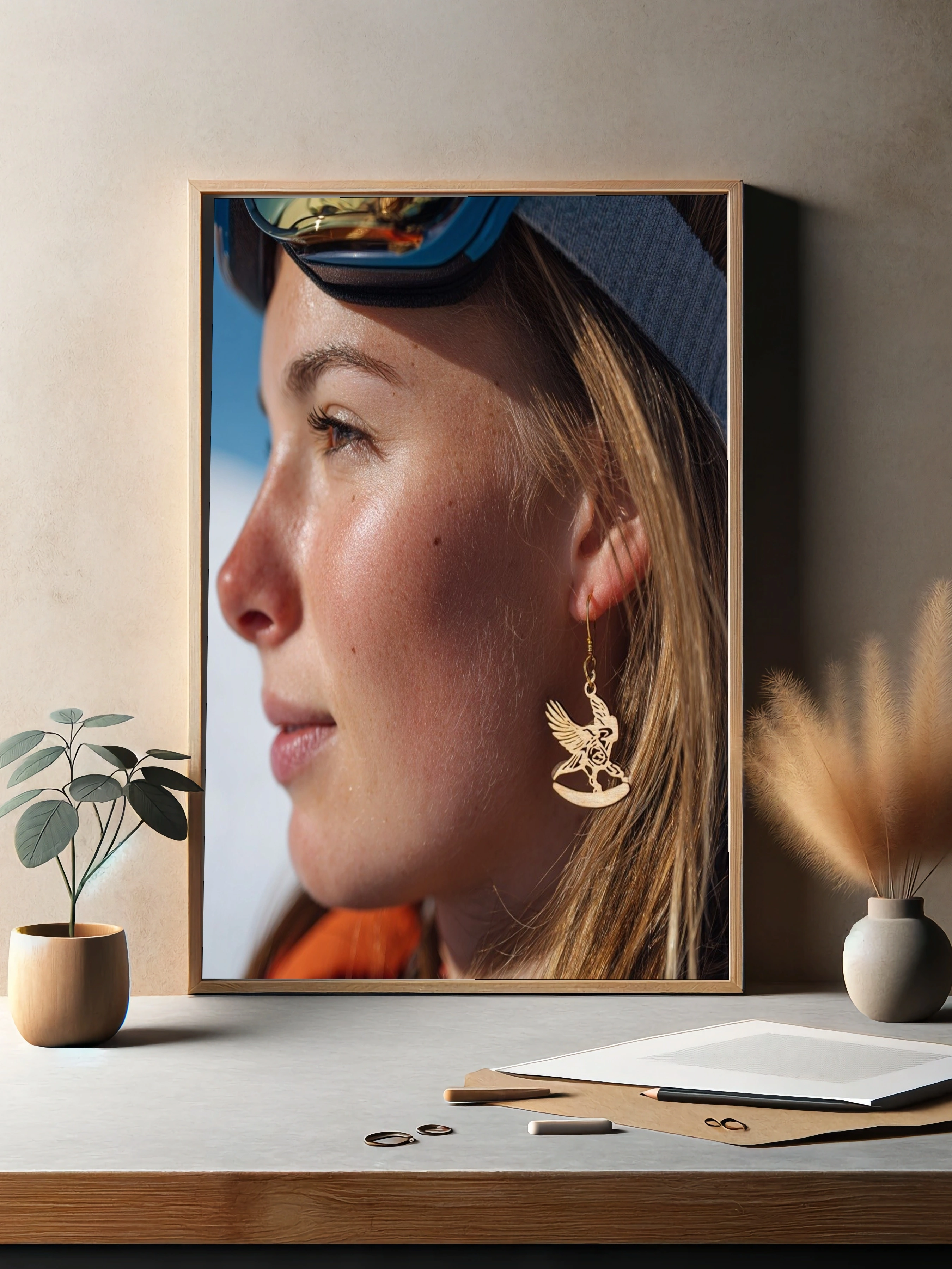 Погрузитесь в мир стиля и элегантности с этими уникальными золотыми серьгами, изображающими изящную птицу. Серьги выполнены из качественного металла с тонкой проработкой деталей, что придаёт им особую изысканность. На фоне снежных склонов и яркого солнечного света, серьги блестят и привлекают внимание, подчеркивая индивидуальность их обладательницы. Цветовая гамма включает теплые золотистые оттенки, которые гармонично сочетаются с любым нарядом. Эти серьги идеально подойдут для активных девушек, любящих стильные аксессуары, и станут отличным дополнением как для повседневной жизни, так и для особых случаев. Они прекрасно подойдут для молодежной аудитории, ценящей уникальность и креативность в моде.