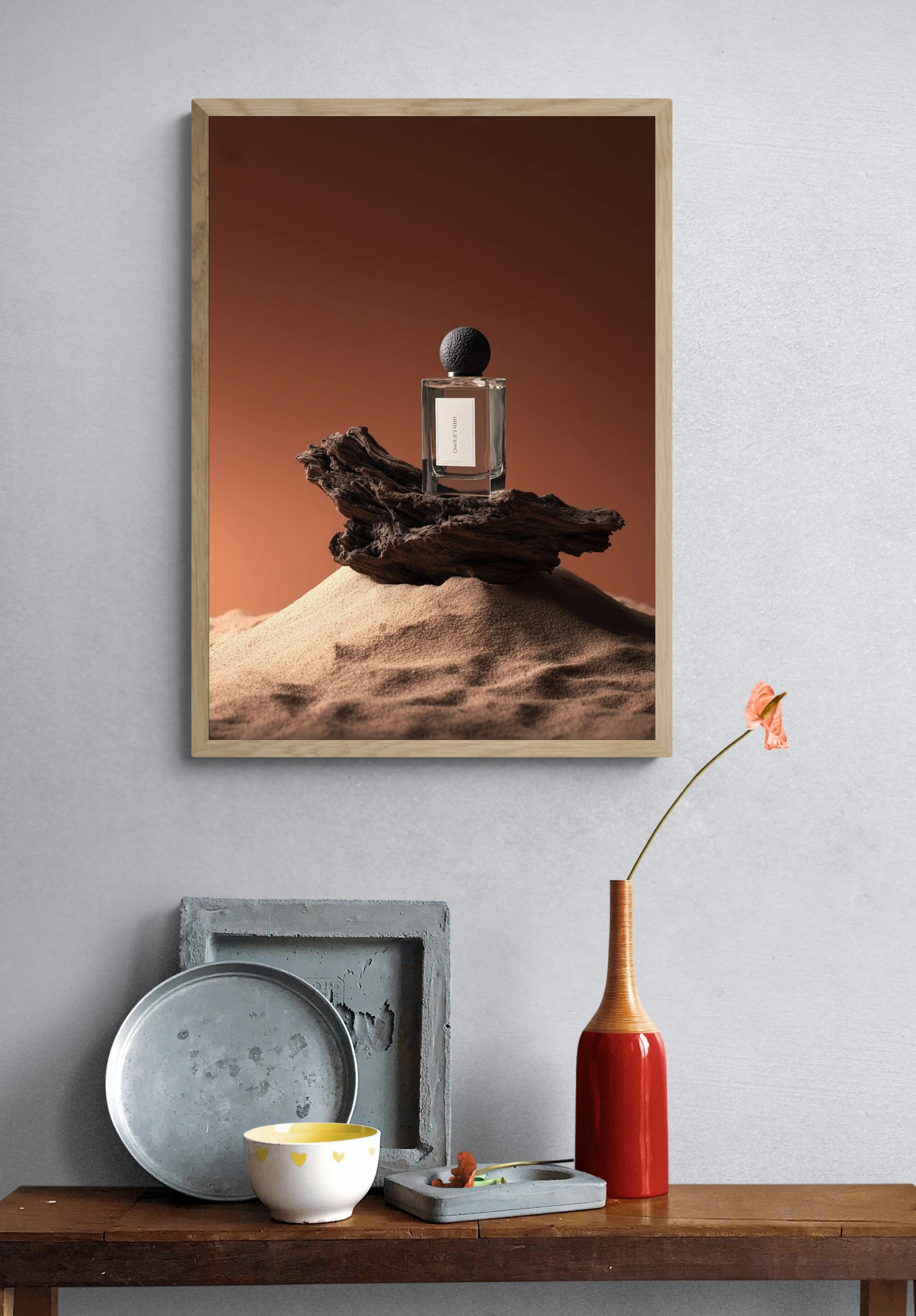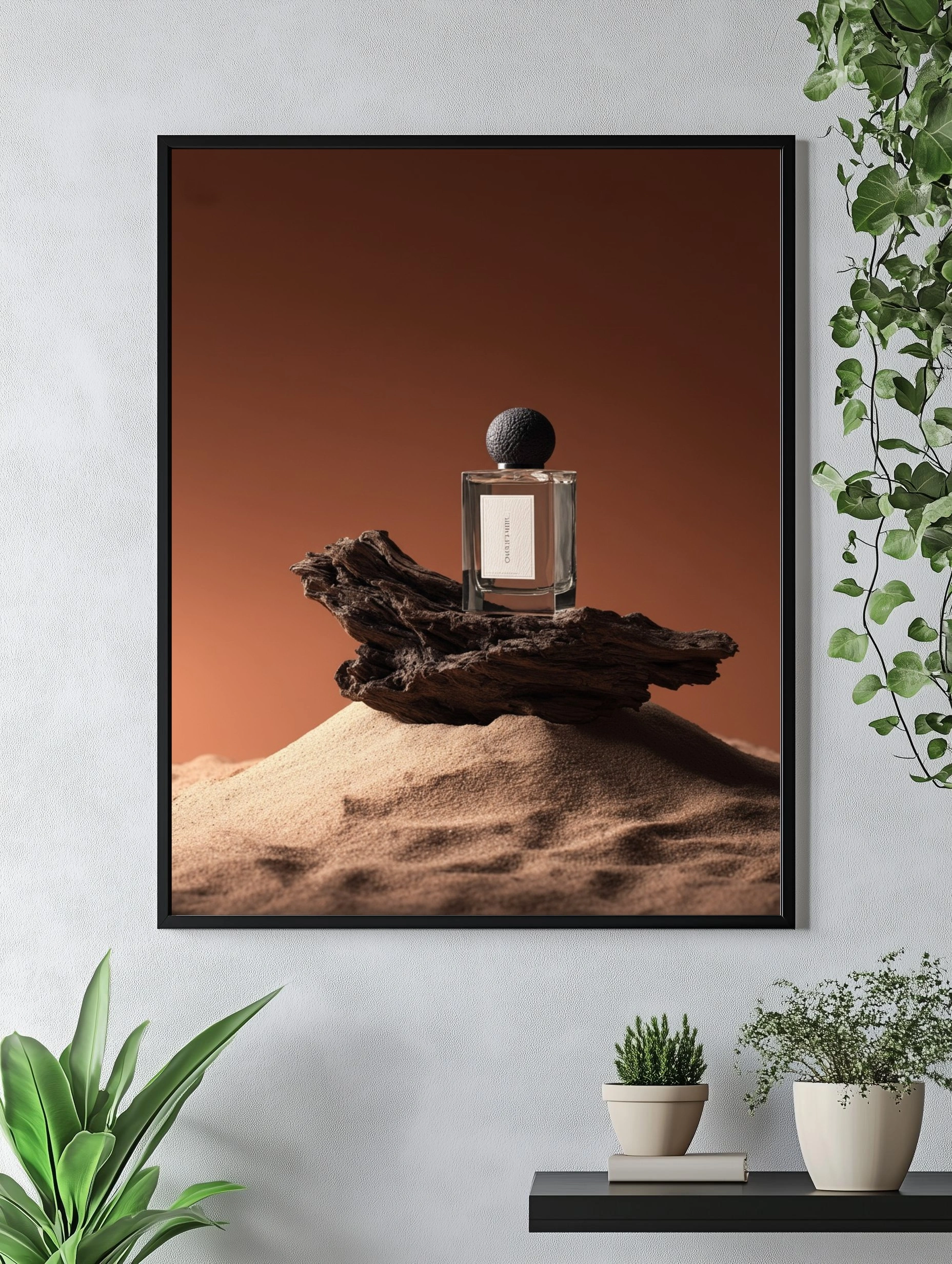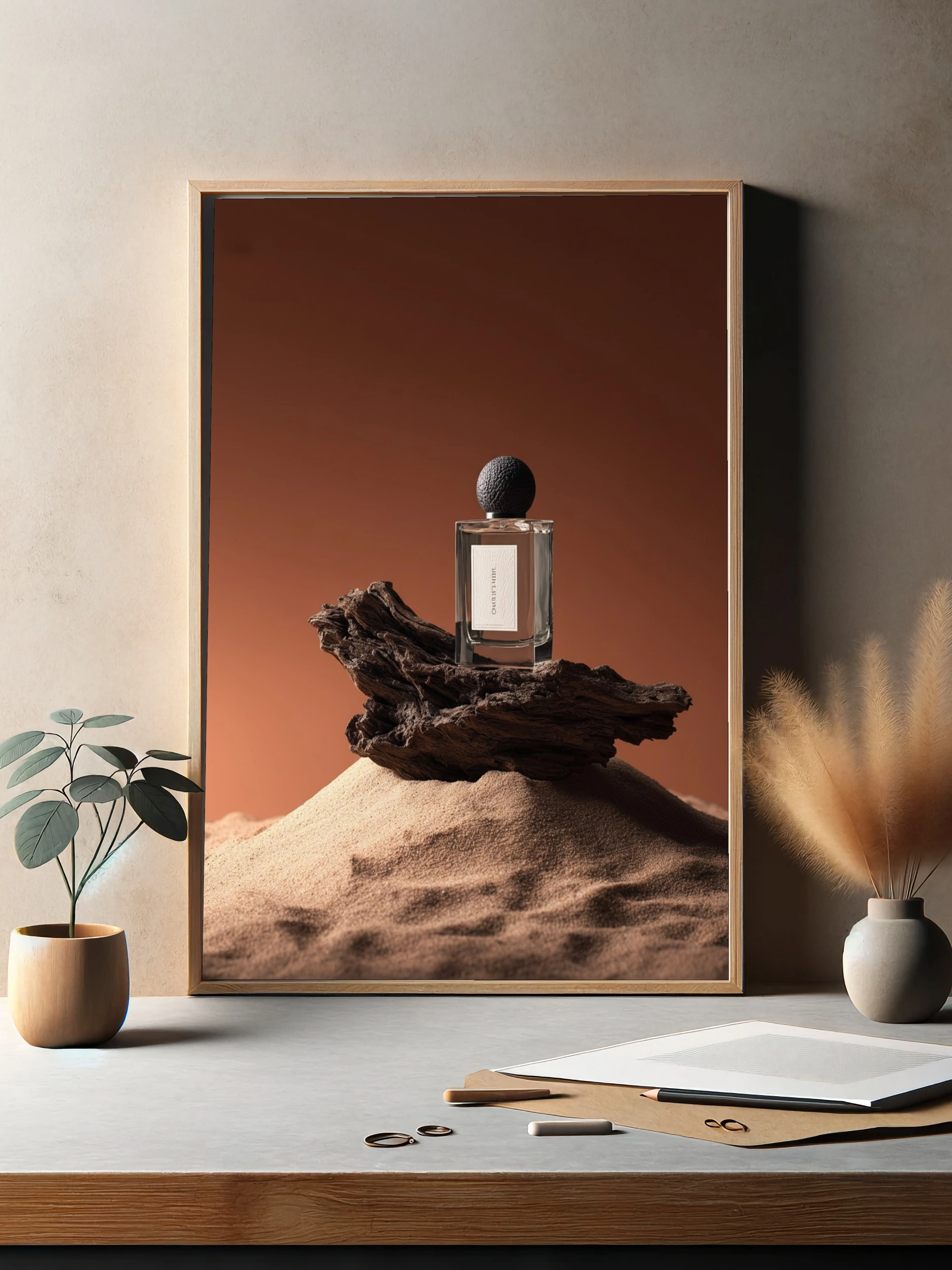 Погрузитесь в мир утонченности с этим изысканным парфюмом, представленным на фоне мягких песчаных дюн. Стеклянный флакон с минималистичным дизайном и текстурированной черной крышкой создает атмосферу роскоши и стиля. Флакон аккуратно размещен на массивном деревянном основании, подчеркивающем натуральные элементы и гармонию с природой. Теплый коричневый фон создает уютное и расслабляющее настроение, идеально подходящее для создания особой атмосферы в вашем доме. Этот парфюм станет великолепным акцентом в спальне или ванной комнате, добавляя нотку элегантности и шарма. Идеален для ценителей красоты и стиля, ищущих уникальные ароматы.