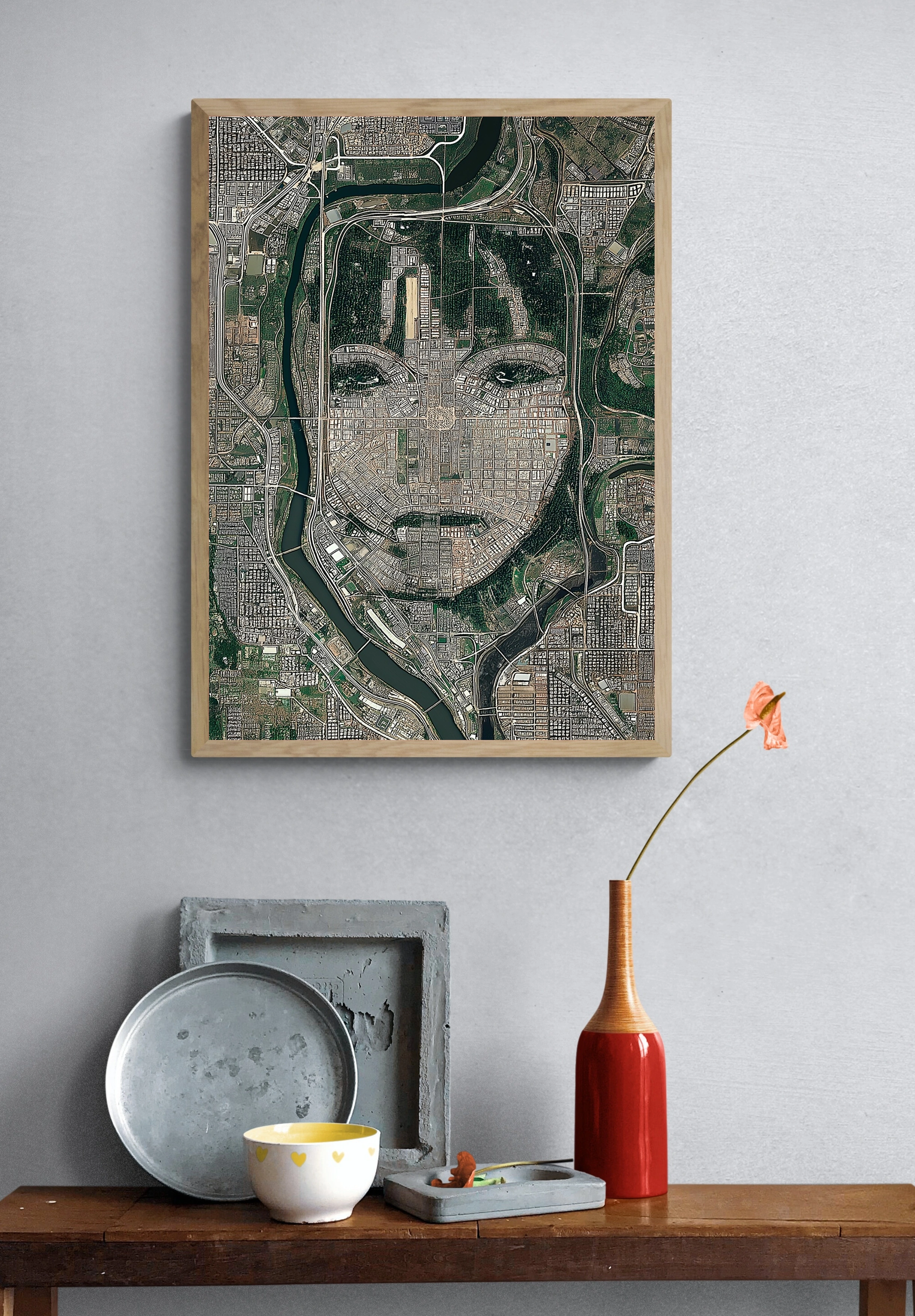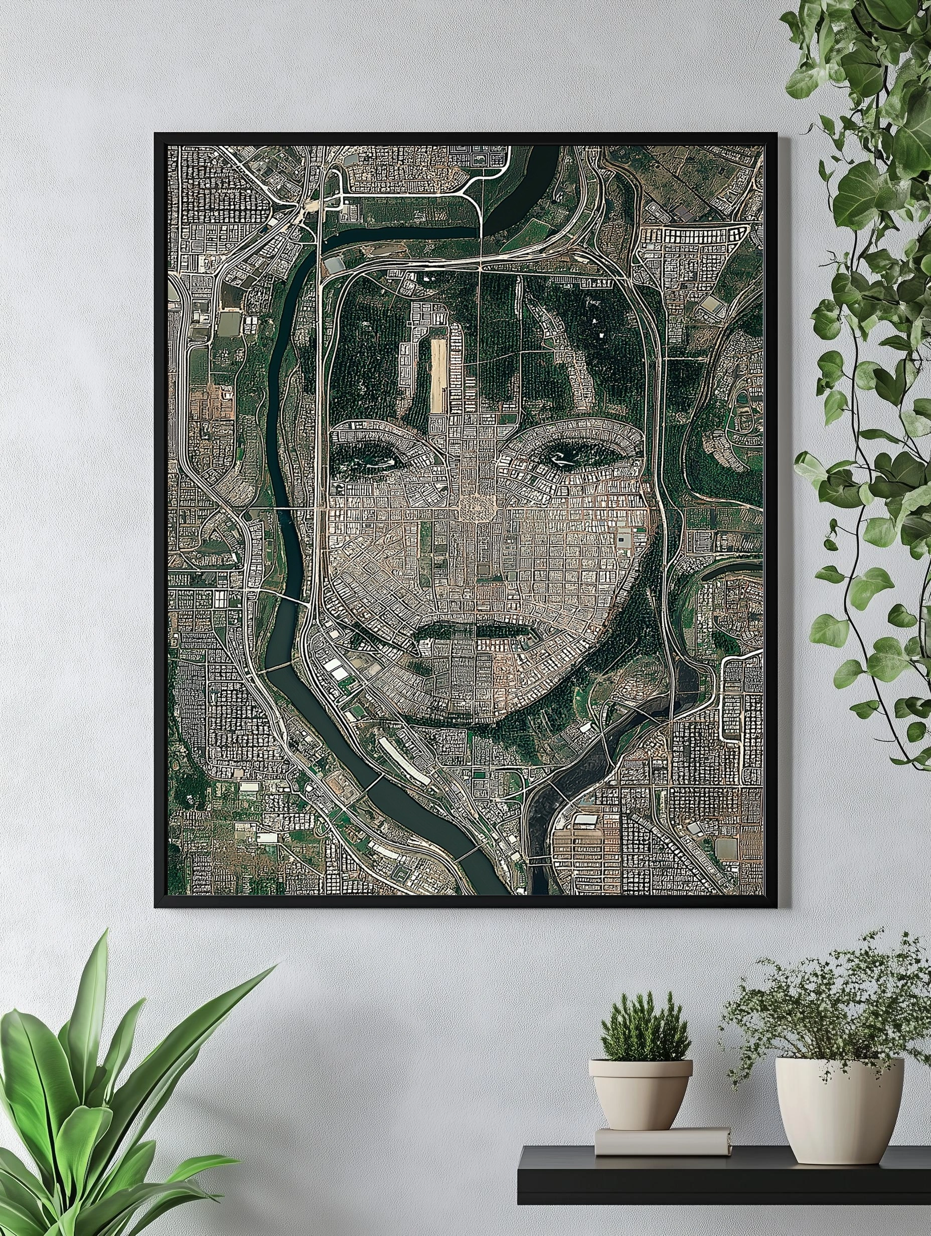 Этот уникальный постер представляет собой захватывающий городской пейзаж, где линии улиц и зданий формируют величественное лицо. Композиция создает иллюзию, будто город сам по себе является живым существом, смотрящим на зрителя. Внимание привлекают детали: извивающиеся реки, зеленые зоны и четкие линии дорог, которые создают контраст с мягкими формами лица. Цветовая гамма включает в себя натуральные оттенки зелени, коричневого и серого, что придает работе органичность и глубину. Стиль постера можно охарактеризовать как современный реализм, который вызывает чувство удивления и восхищения. Этот постер станет отличным акцентом в интерьере гостиной, спальни или офиса, привнося в пространство атмосферу креативности и вдохновения. Идеален для молодежи, креативщиков и всех, кто ценит уникальные художественные решения.