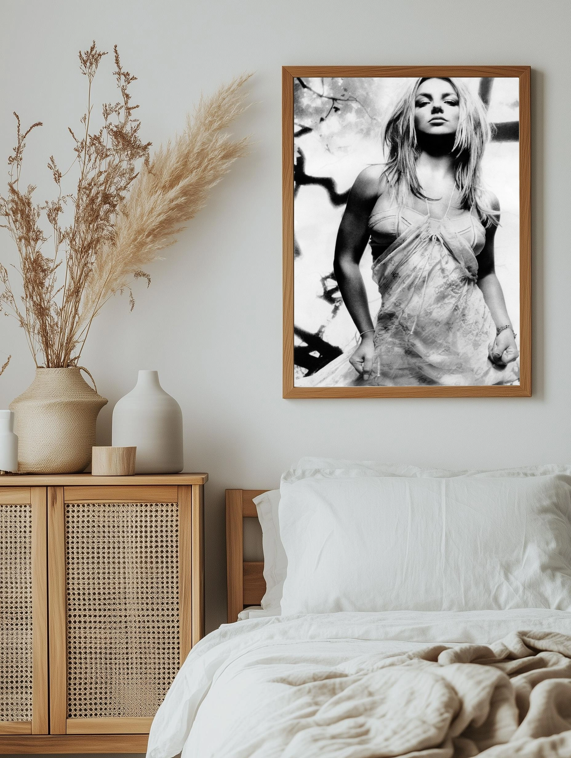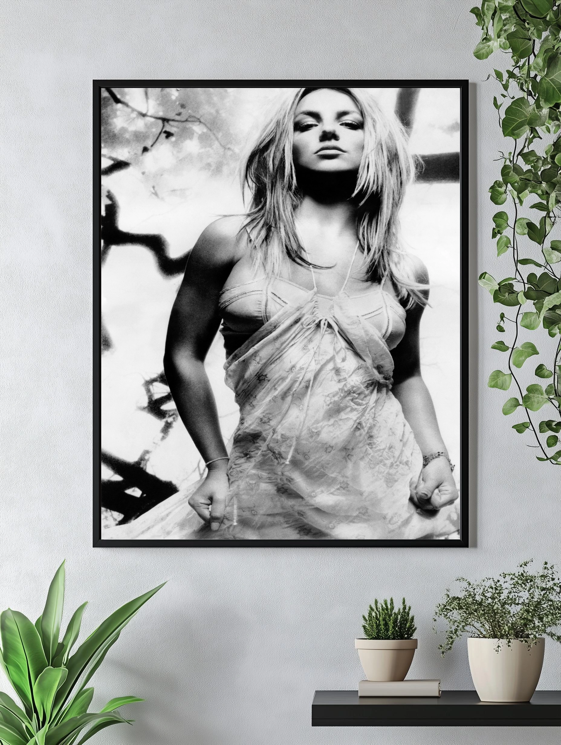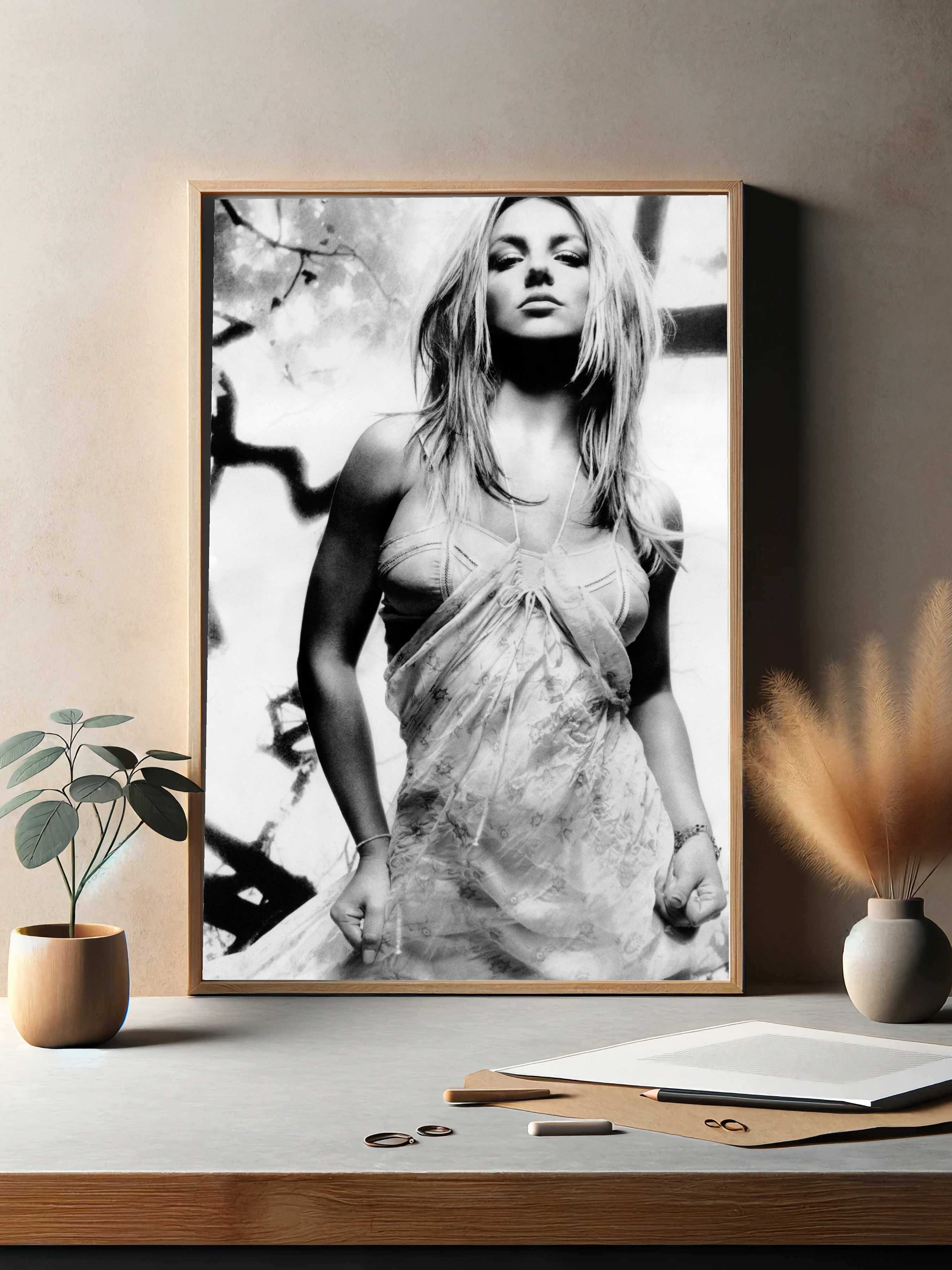 Изображение представляет собой выразительный черно-белый художественный портрет молодой женщины в лёгком платье. Акцент сделан на её уверенном и сильном выражении лица, подчёркнутом контрастным светотеневым решением. Этот интерьерный постер с элементами фотопортрета идеально подойдёт для современного декора гостиной или офиса, добавляя уникальность и стиль.