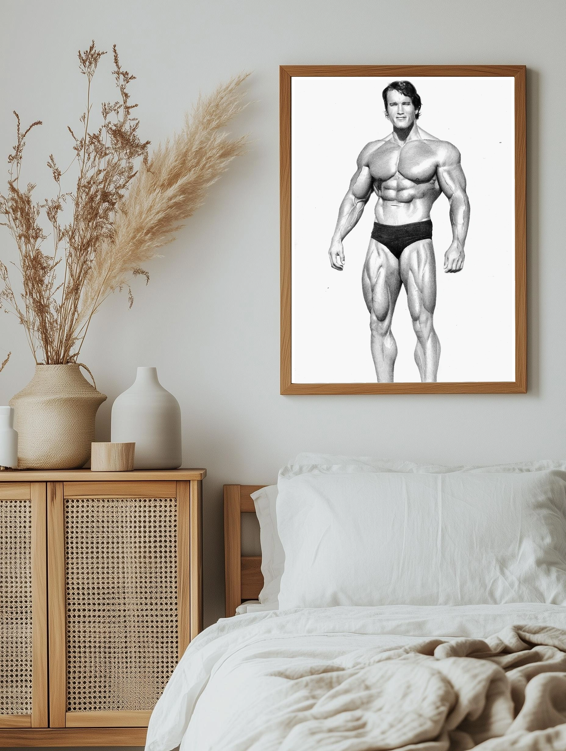 Данная картина представляет собой детализированную черно-белую иллюстрацию мускулистого мужчины в классических плавках. Художественный плакат выполнен в стиле анатомических зарисовок с высоким уровнем детализации мышц и тела. Чёткие тени и световые эффекты подчёркивают рельеф тела, что создаёт впечатление трёхмерности и силы. Этот интерьерный постер будет отлично смотреться как декоративная картина для гостиной, кабинета или спортзала, привнося элегантность и мотивирующий настрой.