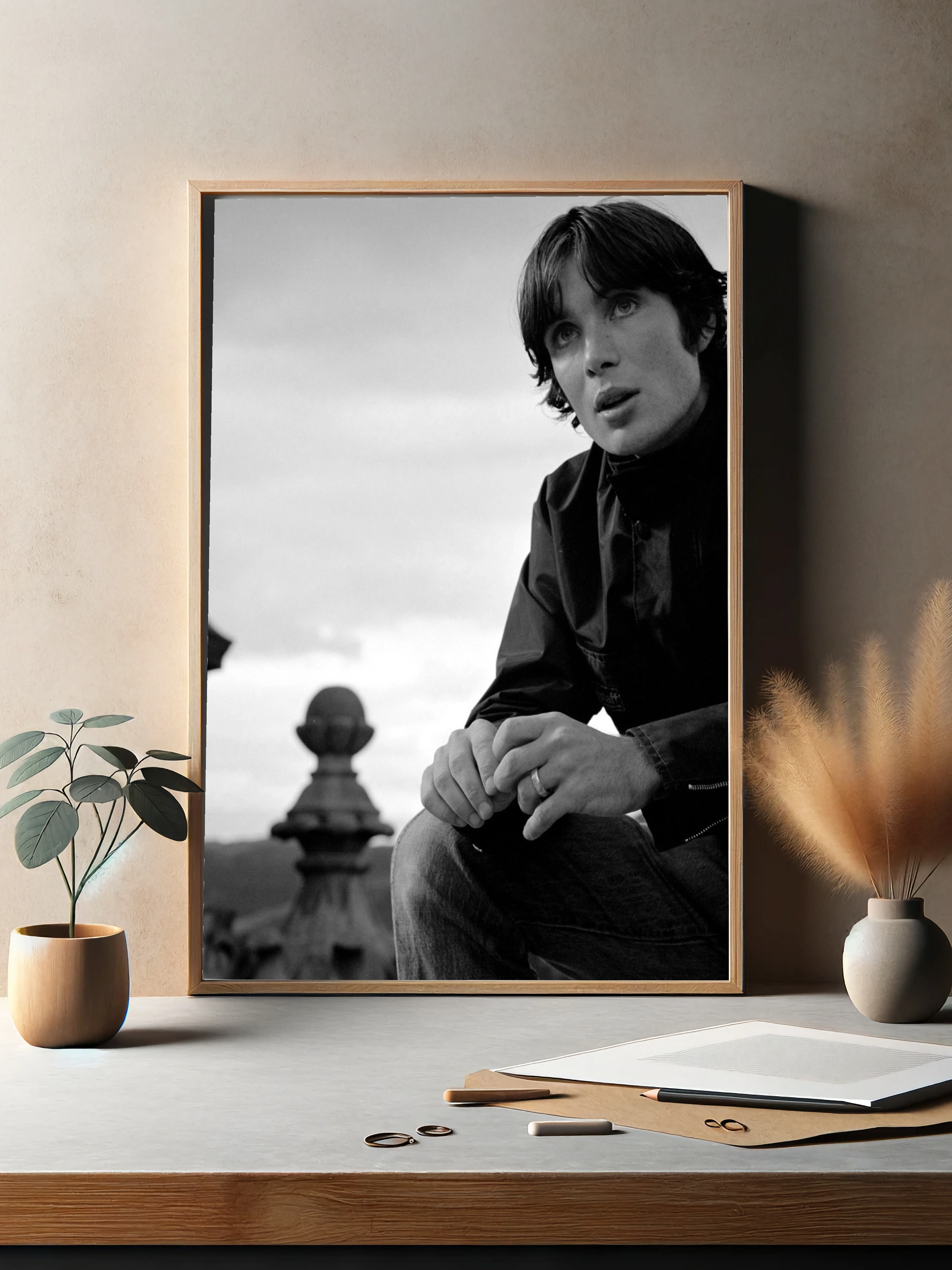 Черно-белая художественная фотография портретного характера, передающая глубокие эмоции и задумчивость героя. Минималистичное сочетание света и тени создаёт атмосферу ретро и стильного декоративного плаката, идеально подходящего для современного оформления гостиной или офиса. Уникальное интерьерное искусство для стен с акцентом на человеческое выражение и настроение.