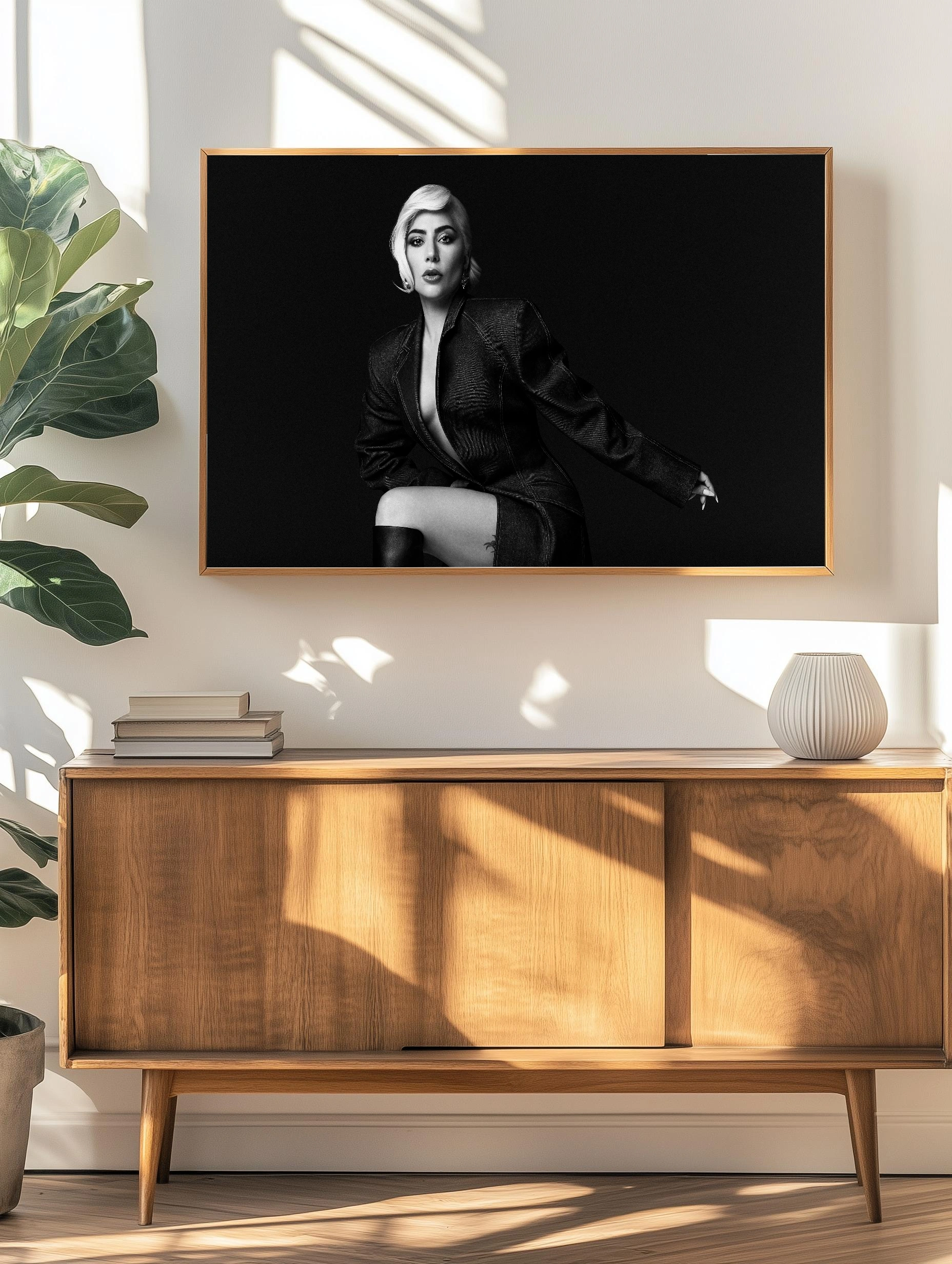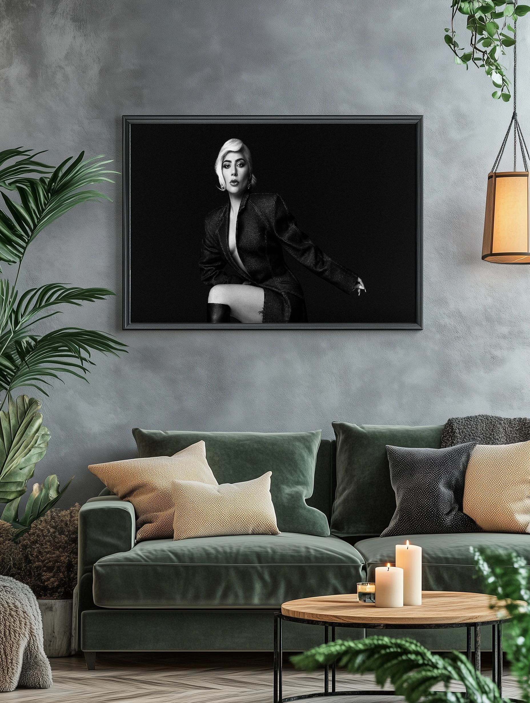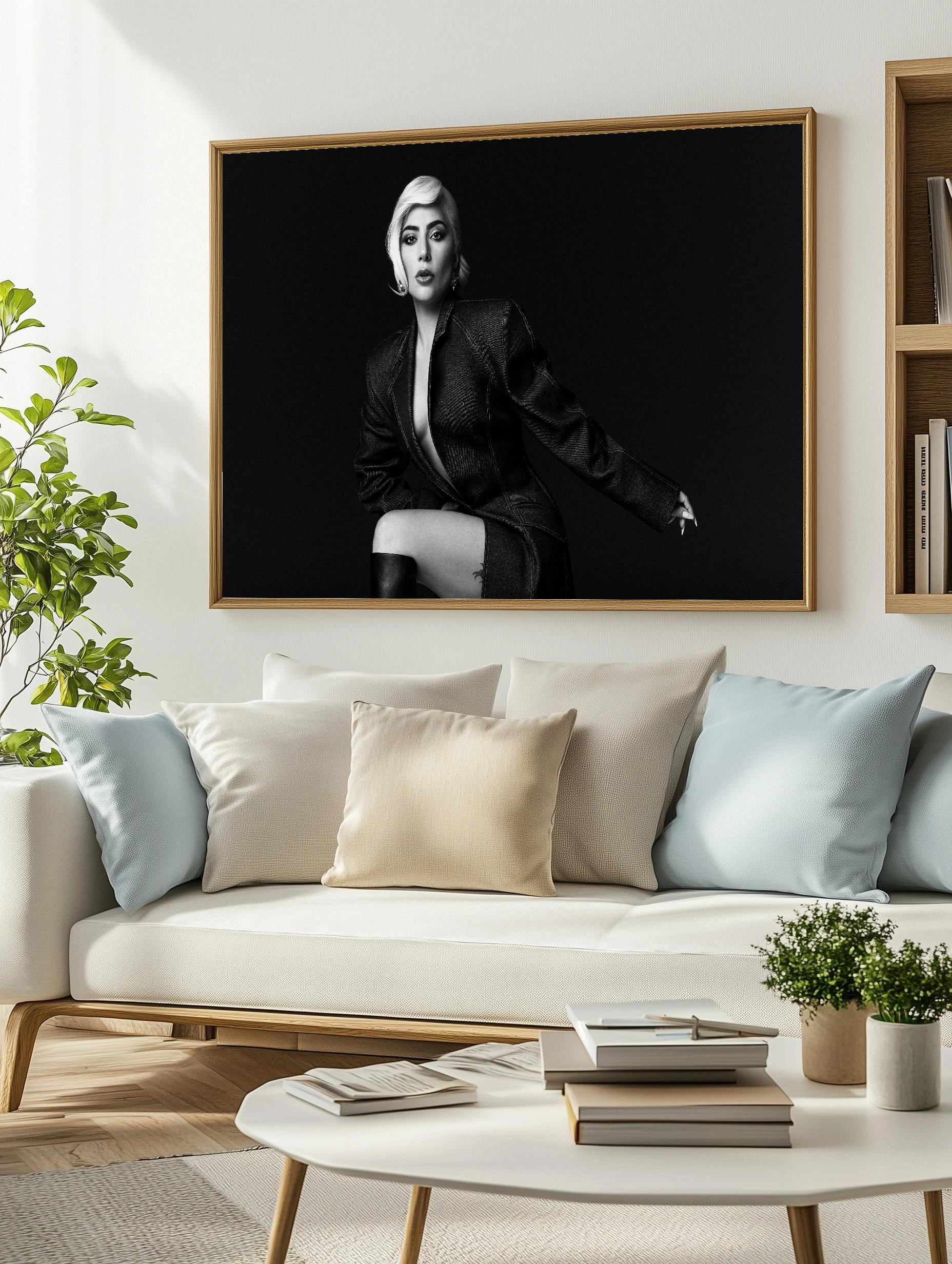Чёрно-белое изображение женщины в элегантном пиджаке с акцентом на стиль и изящество. Этот интерьерный декоративный плакат идеально подходит для гостиной или офиса, добавляя нотки современного искусства в пространство. Уникальная игра контрастов подчёркивает каждую деталь, создавая стильный декор стен.