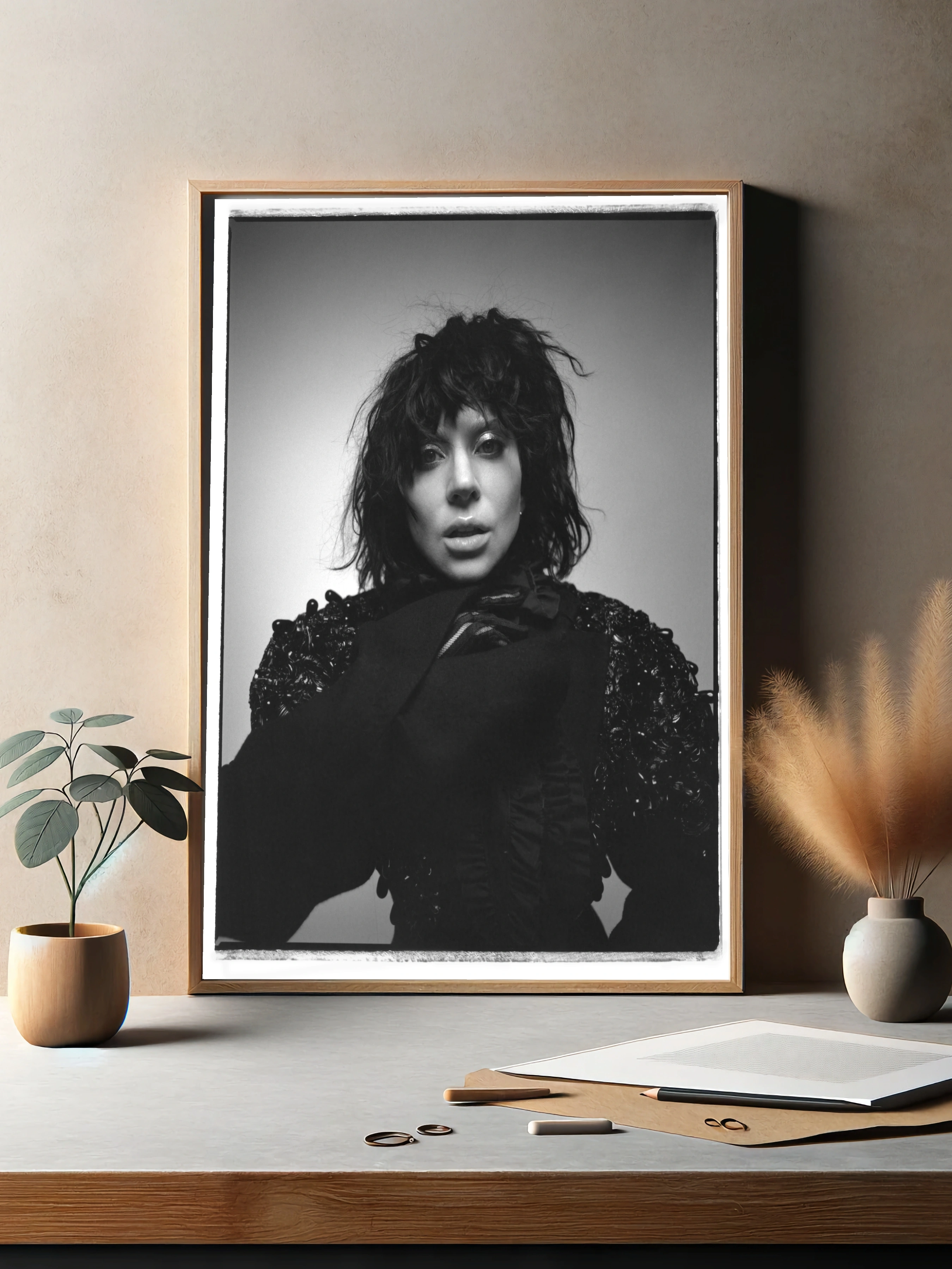 Черно-белое художественное изображение женщины с густыми кудрявыми волосами и глубоким взглядом создает атмосферу мистики и глубины. Этот интерьерный арт идеально подходит в качестве стильного декоративного плаката для спальни, гостиной или офиса, приносит современное искусство и элегантность в любой интерьер.