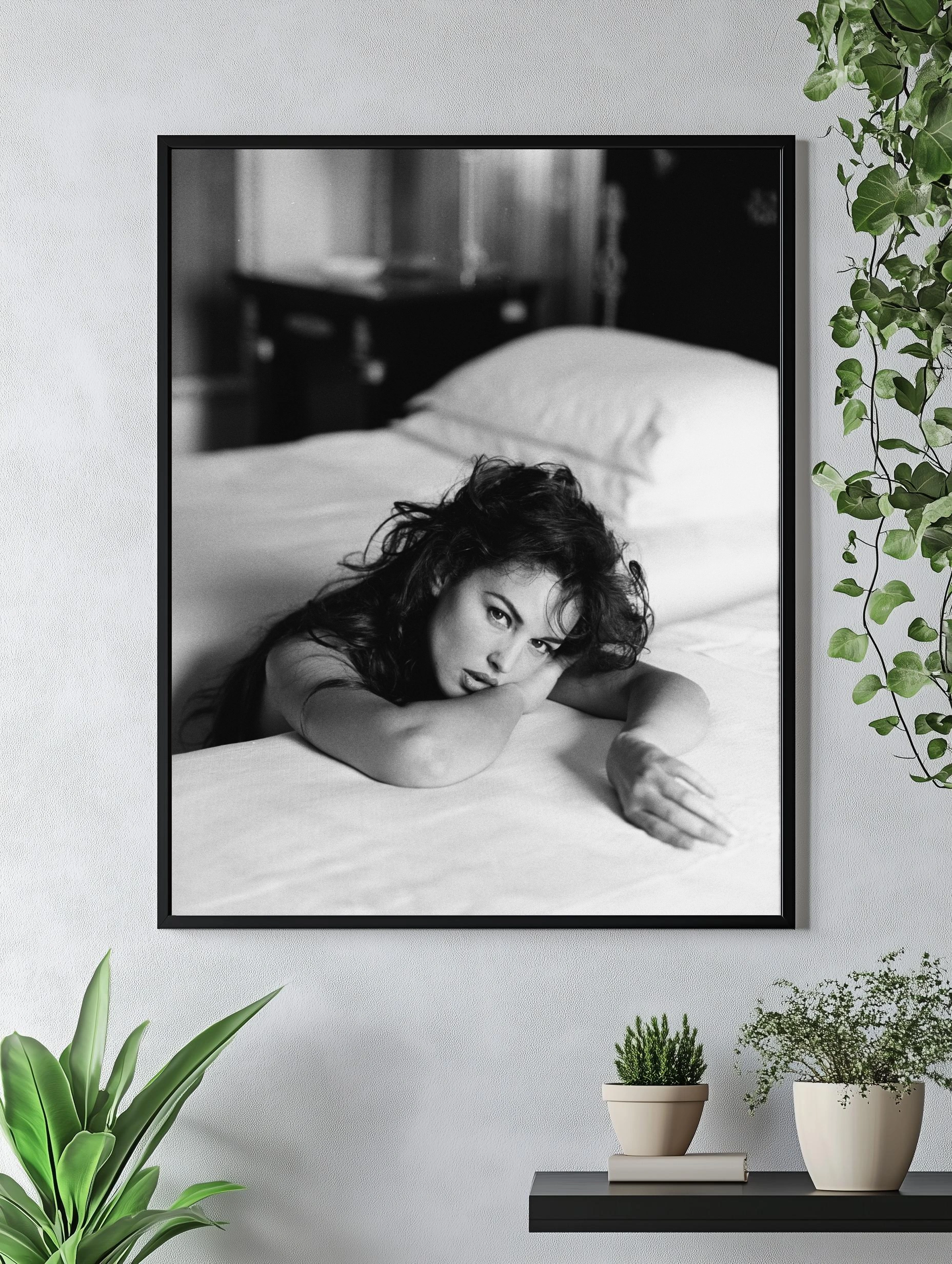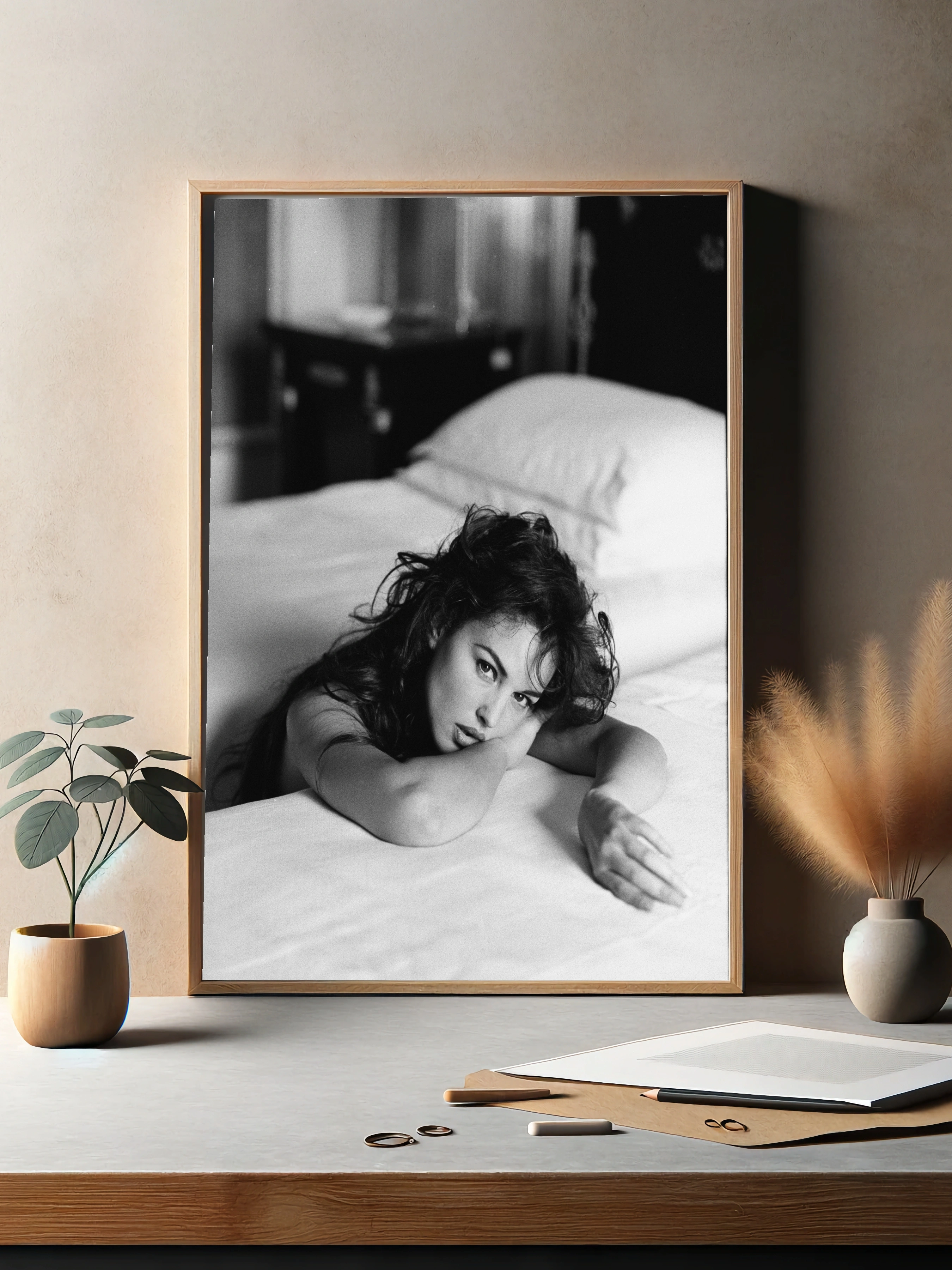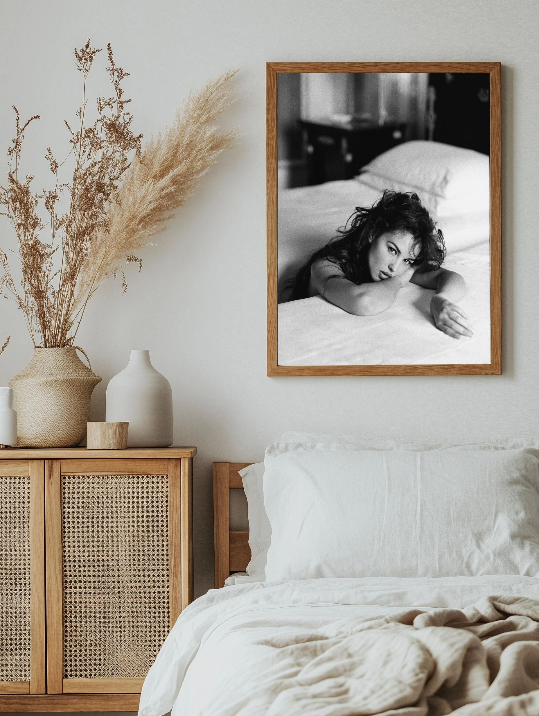 Черно-белое изображение женщины в элегантном платье с объемными рукавами создает атмосферу классической элегантности и утонченности. Это интерьерное искусство для стен, подходящее для спальни, гостиной или офиса, где важен стильный и выразительный настенный декор. Художественный плакат передает чувство сдержанной красоты и изящества.