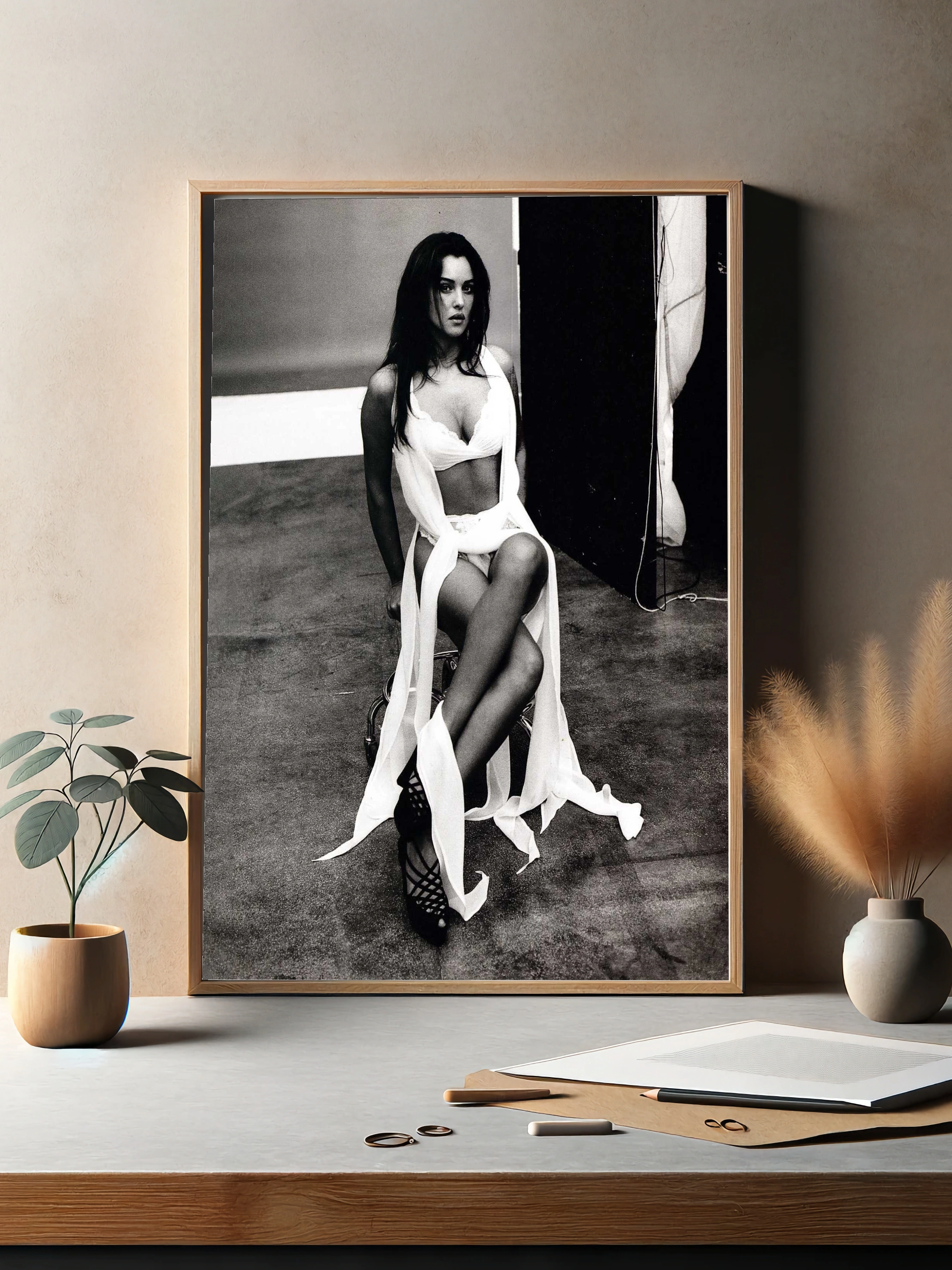 Эстетичный черно-белый интерьерный постер с изображением женщины в элегантном, сексуальном образе. Такой художественный плакат подчеркивает силу и грацию, идеально подходит для создания стильного декора стен в спальне, гостиной или офисе. Черно-белая гамма добавляет глубины и утонченности, акцентируя эмоциональность момента.