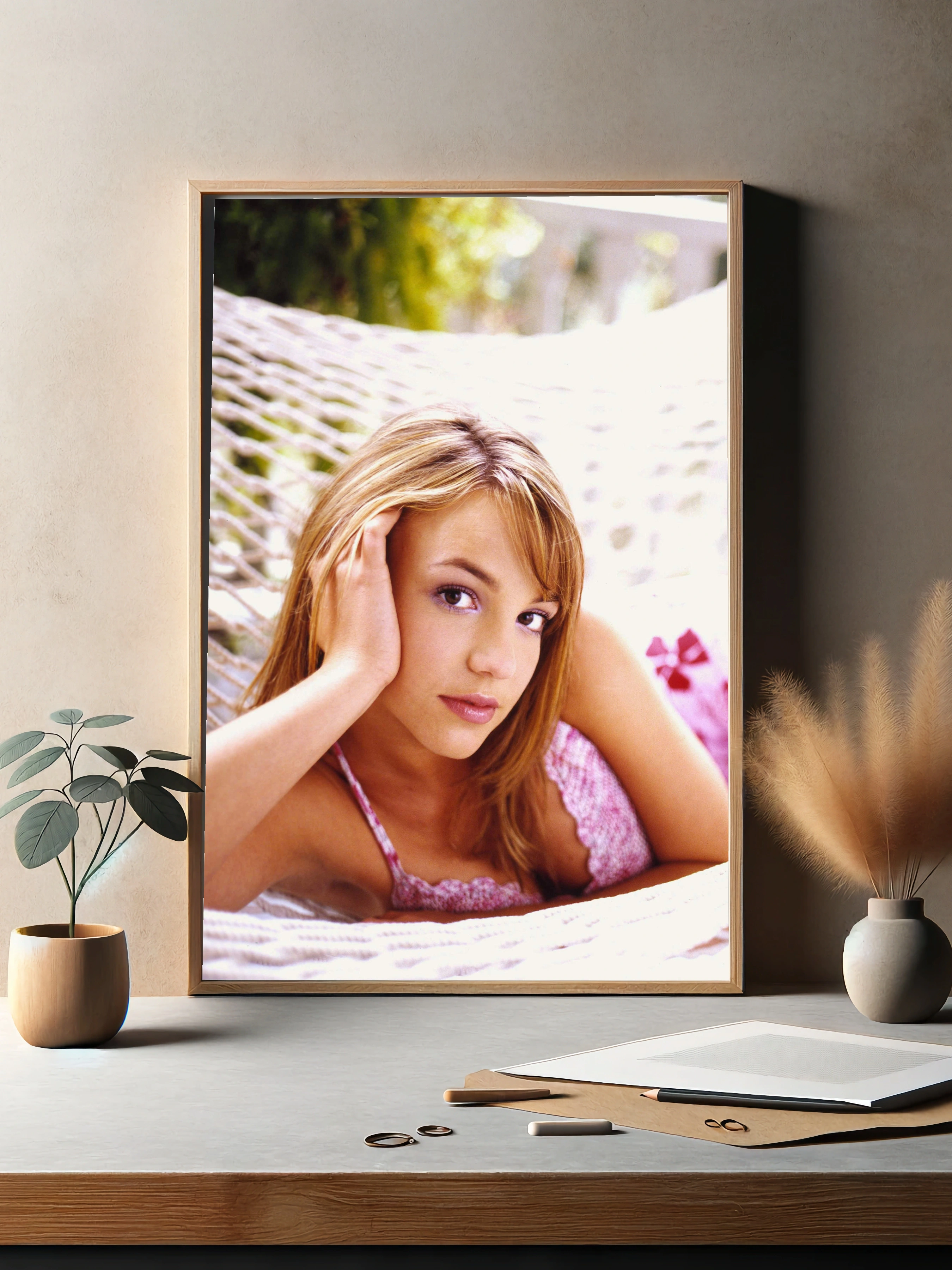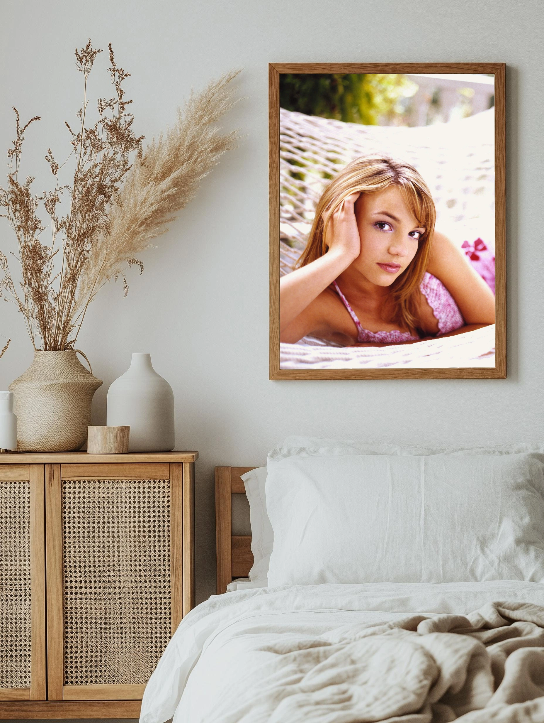 Изображение представляет собой художественную фотографию молодой женщины с естественным макияжем и светло-русыми волосами, отдыхающей на плетёной поверхности в расслабленной позе. Светлая и мягкая гамма передаёт атмосферу уюта и спокойствия, идеально подходящую для интерьерного искусства спальни или гостиной. Этот декоративный плакат с принтом подчеркнёт нежность и гармонию в вашем уютном пространстве.