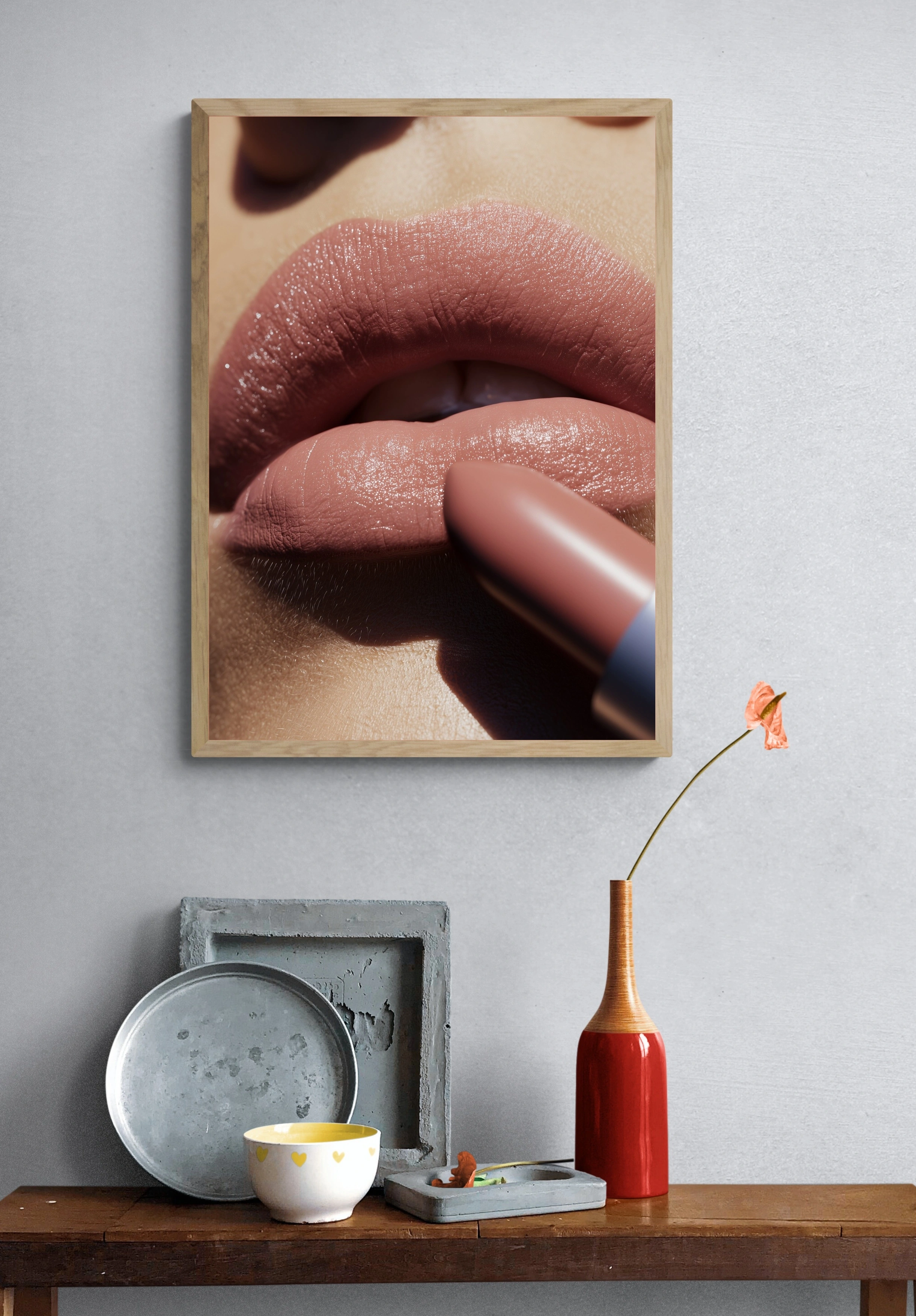 Погрузитесь в мир красоты с этим потрясающим постером, на котором изображены роскошные губы, покрытые нежным нюдовым оттенком помады. Фокус на губах создает ощущение интимности и привлекательности, а мягкий свет подчеркивает их текстуру и блеск. Помада, держащаяся в руке, идеально сочетается с цветом губ, создавая гармоничную композицию. Теплые бежевые и розовые оттенки создают уютную атмосферу, вызывая ассоциации с естественной красотой. Этот постер станет идеальным акцентом в спальне, ванной или косметическом уголке, добавляя нотку элегантности и стиля. Он привлечет внимание молодежи и женщин, стремящихся подчеркнуть свою индивидуальность и любовь к косметике.