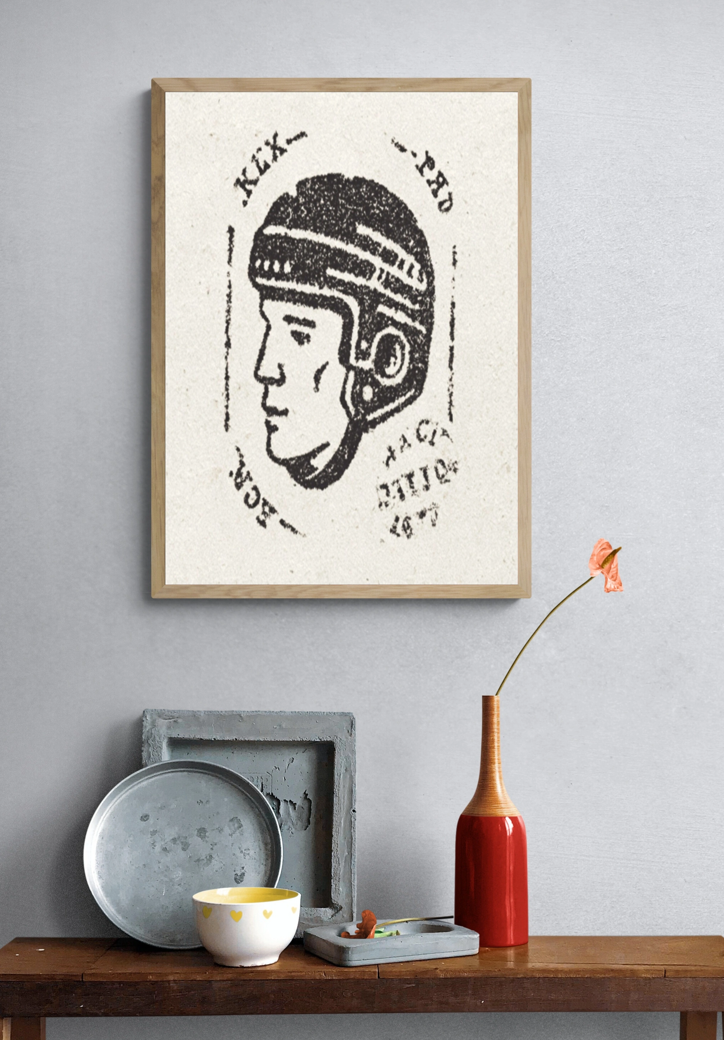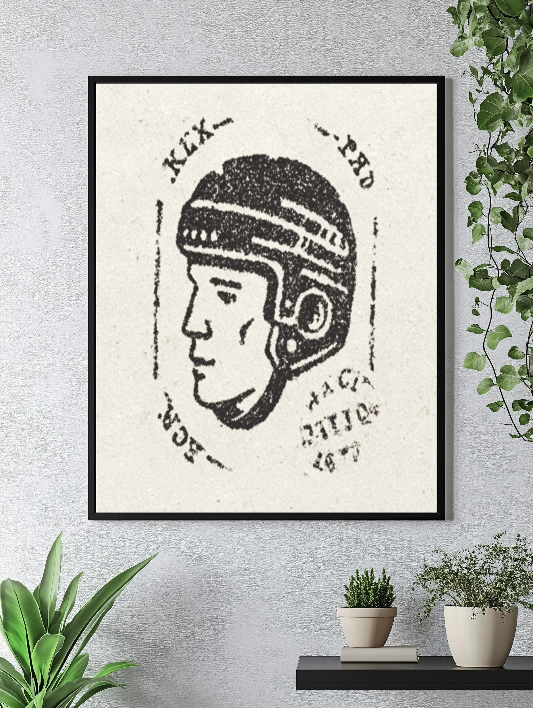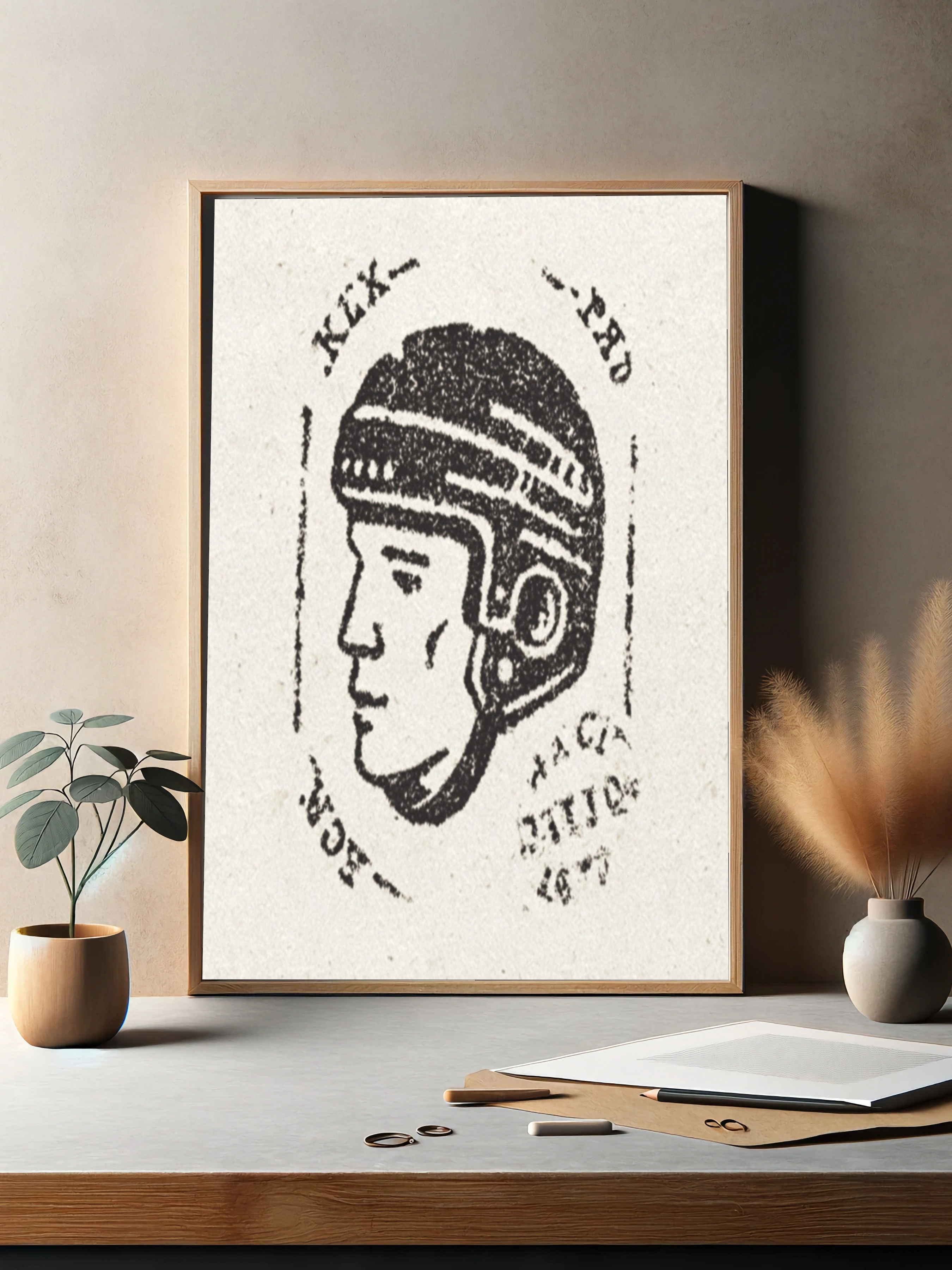 Погрузитесь в атмосферу хоккейного прошлого с этой уникальной ретро-иллюстрацией, изображающей хоккеиста в защитном шлеме. Лаконичный профиль спортсмена, выполненный в черно-белых тонах, создает ощущение ностальгии и силы. Шлем с характерными деталями и аккуратными линиями подчеркивает динамику и энергию игры. Фон выполнен в светлом оттенке, что делает изображение еще более выразительным. Этот постер идеально впишется в интерьер спортивного клуба, офиса или домашнего кабинета, добавляя нотку мужества и духа соревнования. Он станет отличным подарком для любителей хоккея и активного образа жизни, а также для тех, кто ценит уникальные арт-объекты.
