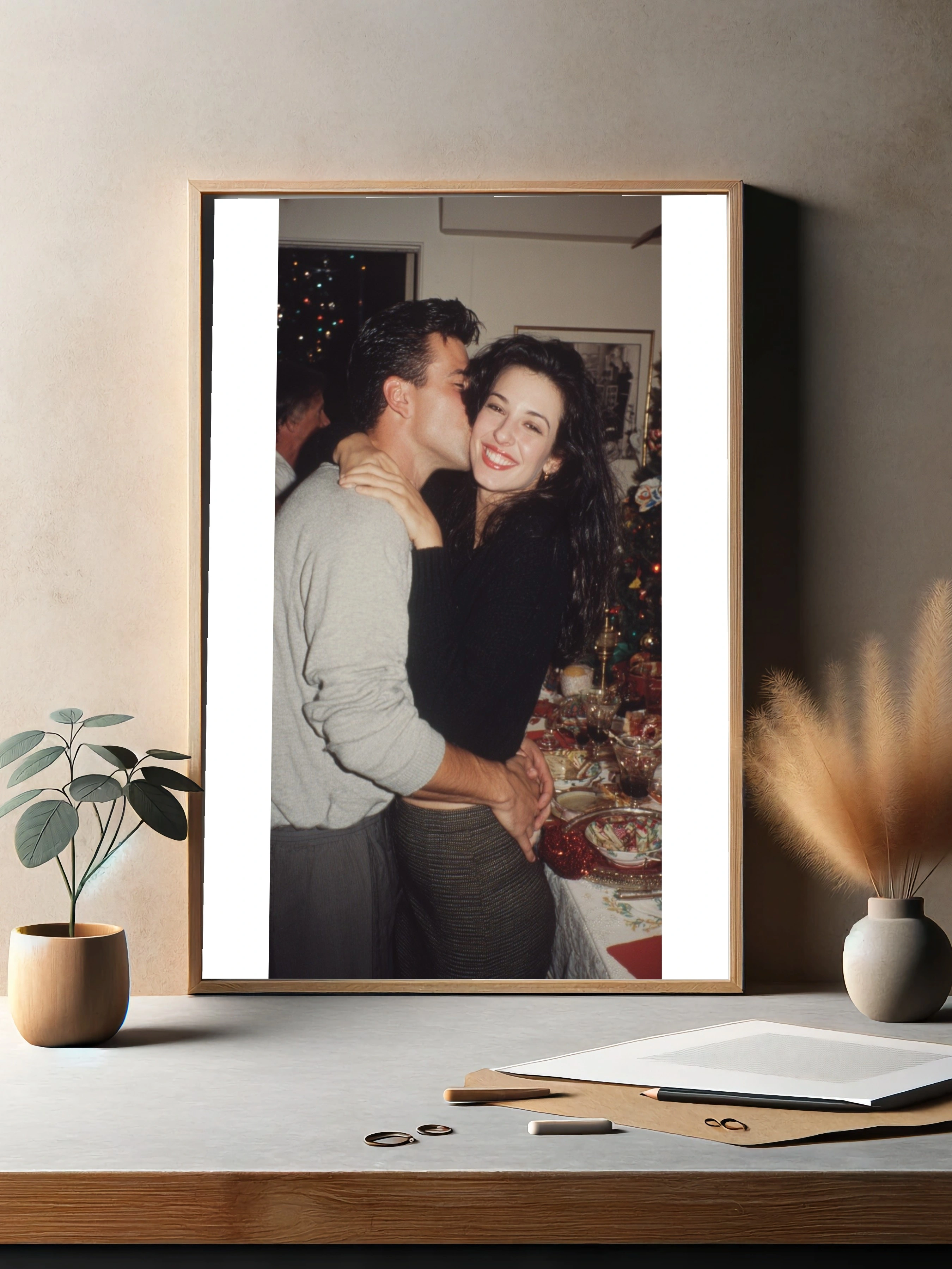 Погрузитесь в атмосферу праздника с этим трогательным постером, где запечатлен момент нежности между влюбленной парой. Мужчина, одетый в светлый свитер, нежно целует женщину, которая улыбается, обнимая его. На заднем плане виднеется праздничное убранство: ёлка с огоньками и стол, уставленный угощениями. Этот постер наполнен теплом и радостью, создавая ощущение уюта и любви. Основные акценты на ярких деталях: блеск посуды и яркие цвета декора. Идеально подходит для оформления гостиной или спальни, добавляя романтическое настроение в любое пространство. Целевая аудитория — молодые пары и семьи, ищущие вдохновение для создания уютной атмосферы.