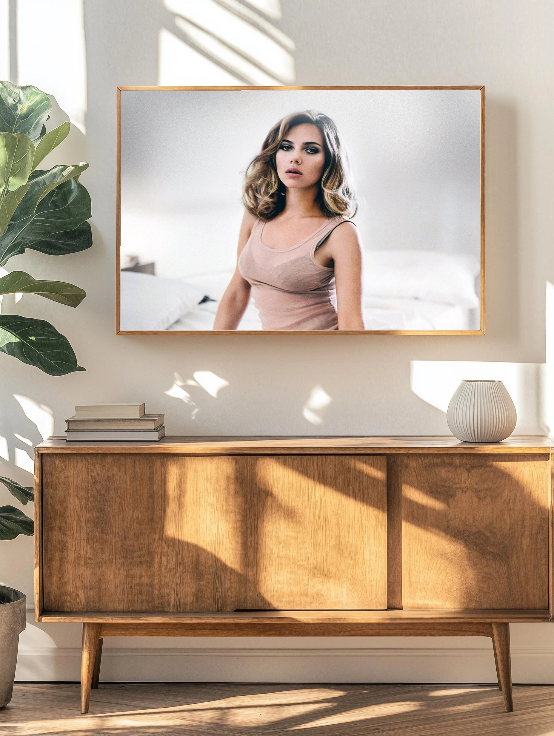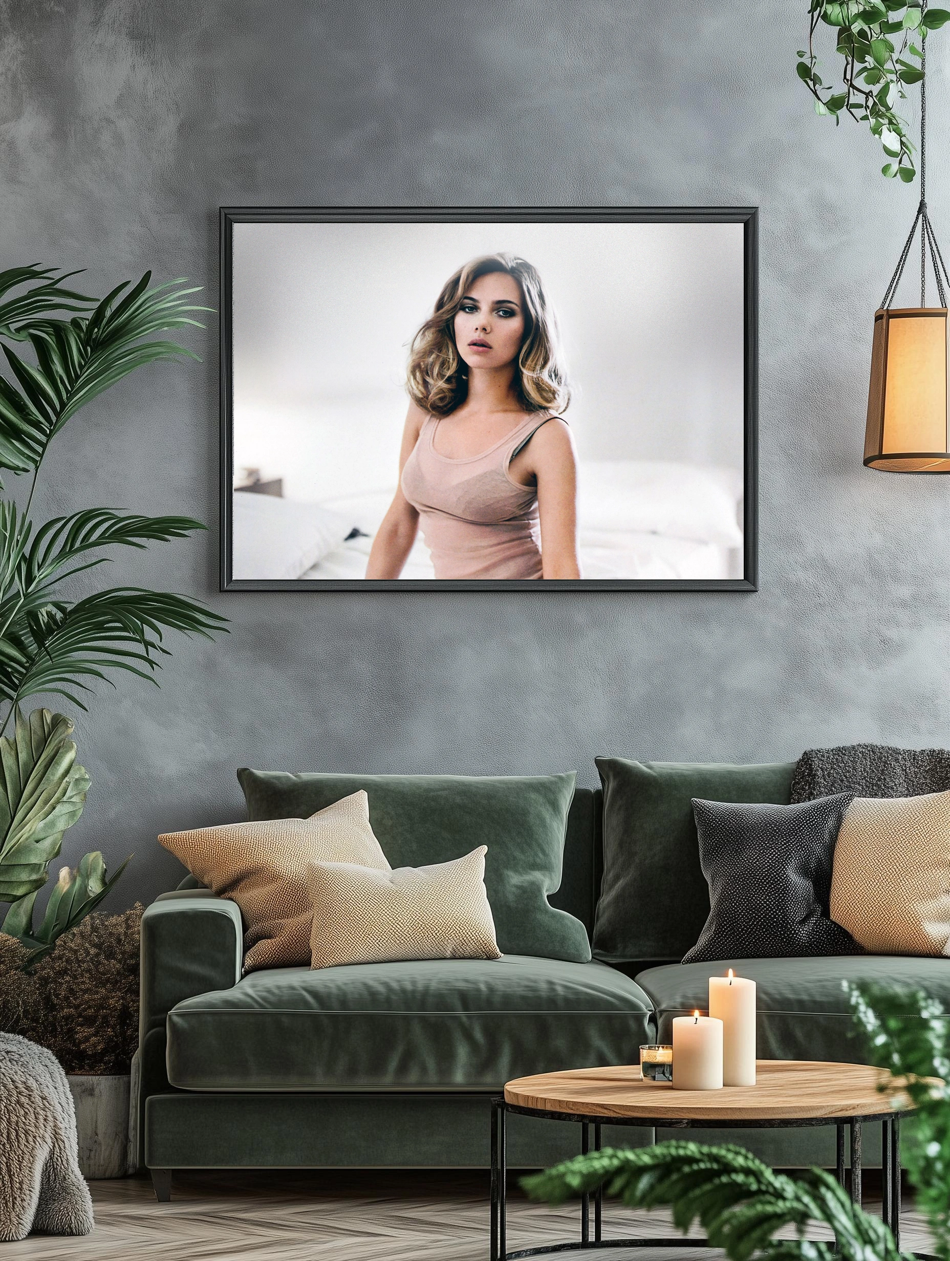 Фотопостер с изображением молодой женщины в розовом топе на светлом нейтральном фоне. Основной акцент сделан на её выразительном лице и естественном образе. Этот художественный плакат станет стильным декором стен, подходит для создания уютной атмосферы в гостиной или спальне. Современное интерьерное искусство в мягкой цветовой гамме.