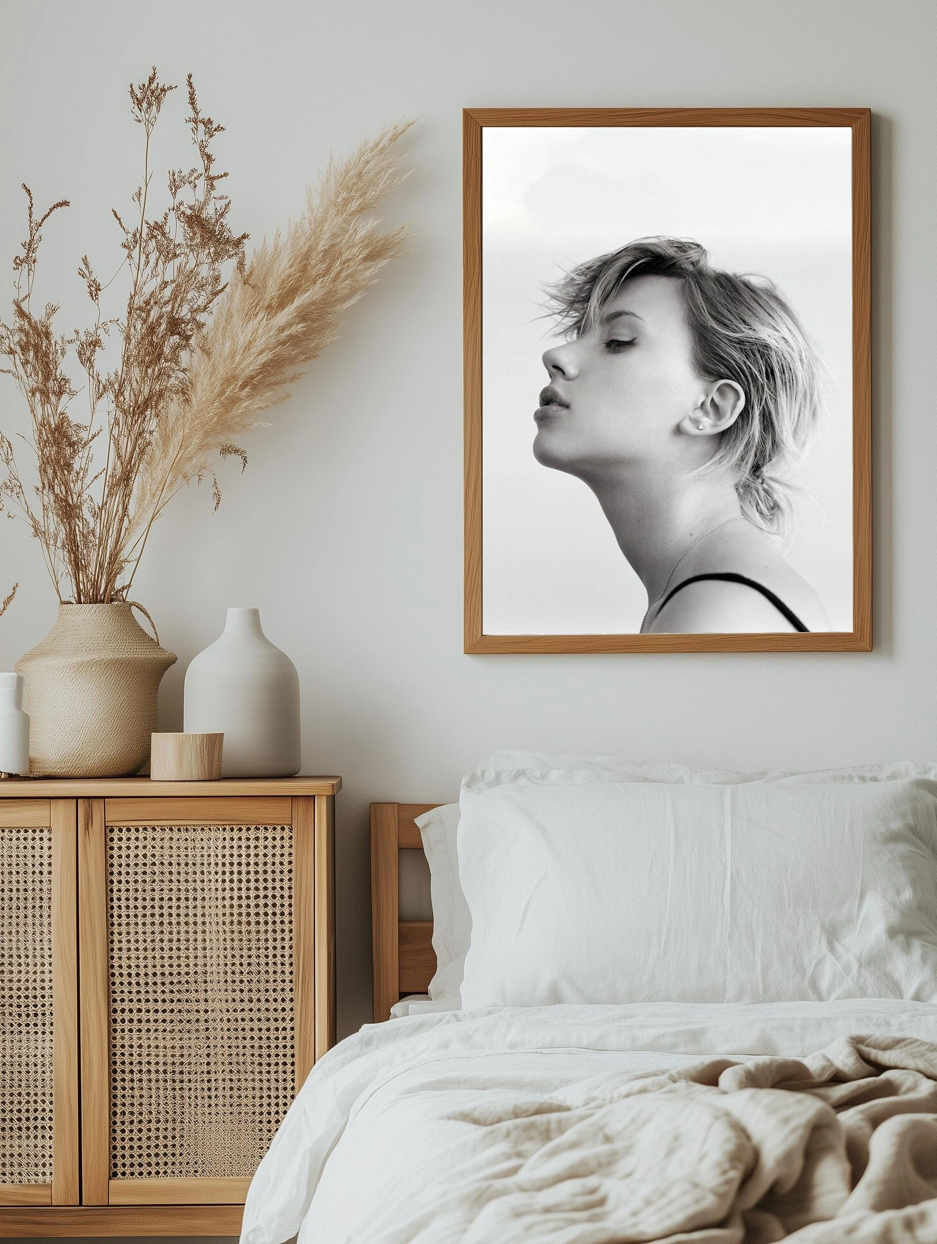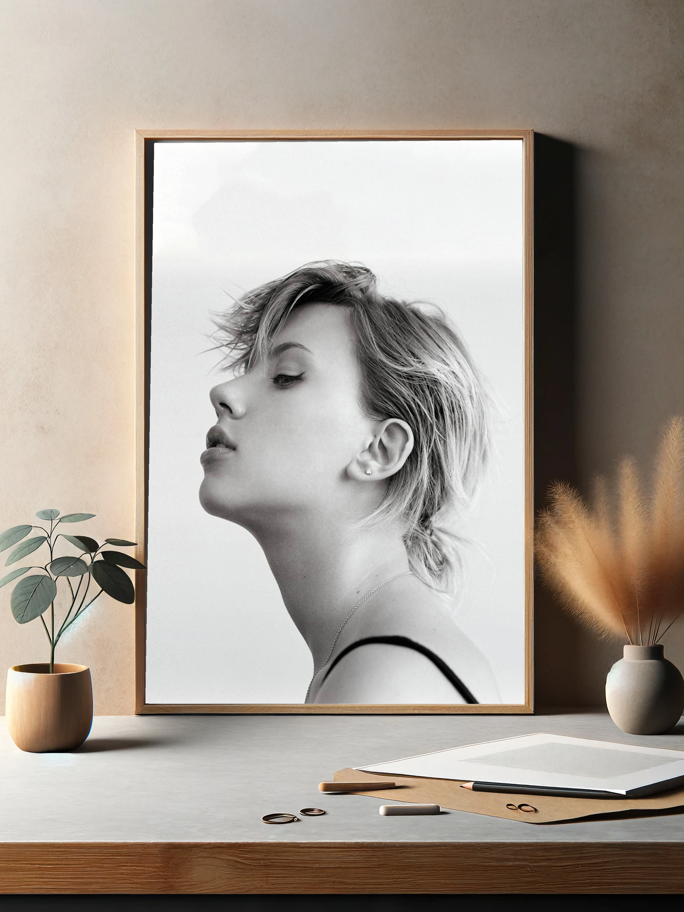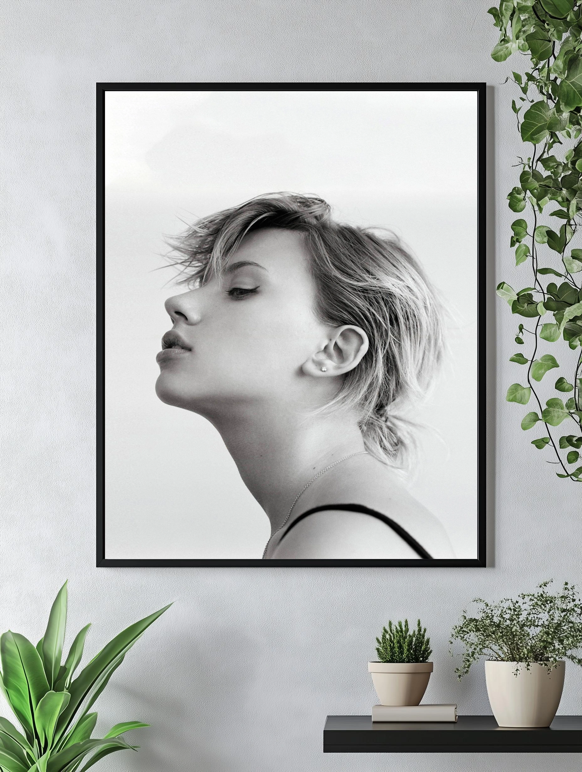 Черно-белое художественное изображение женского профиля с акцентом на тонкие детали лица и текстуру волос. Строгий минимализм и изысканная простота создают атмосферу спокойствия и красоты. Идеально для интерьерного декора, современного искусства на стену, декоративного плаката для спальни или гостиной.