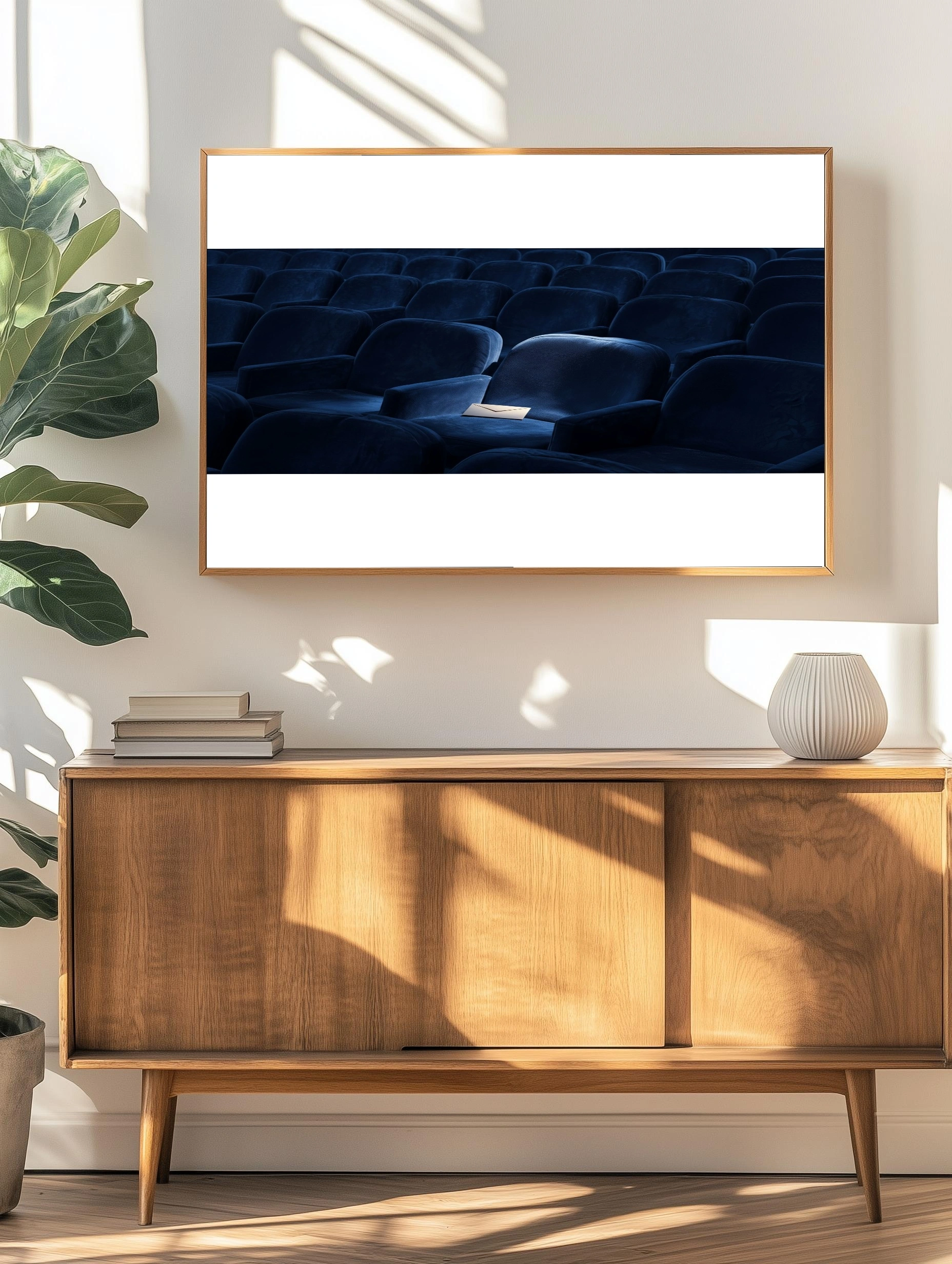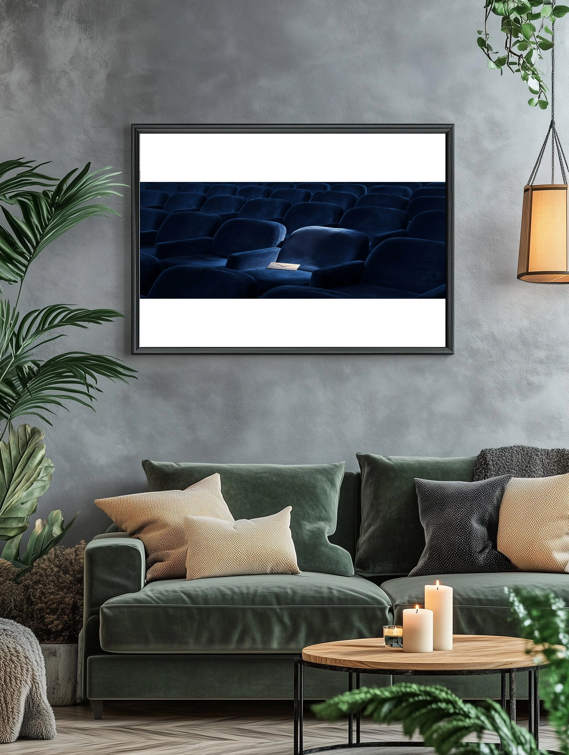 Этот постер погружает вас в атмосферу загадки и ожидания. На фоне темно-синих, бархатных кресел, словно застывших в ожидании зрителей, выделяется одинокий конверт, оставленный на одном из сидений. Его светлый цвет создает яркий контраст с окружающей темнотой, привлекая внимание и вызывая вопросы. Какова его история? Что внутри? Этот визуальный акцент создает интригующую композицию, которая будет отлично смотреться в любом интерьере. Постер выполнен в стиле минимализма, что подчеркивает его элегантность и современность. Идеально подходит для гостиных, офисов или креативных пространств, он привлечет внимание молодежи и творческих людей, стремящихся добавить нотку загадки в свой интерьер.