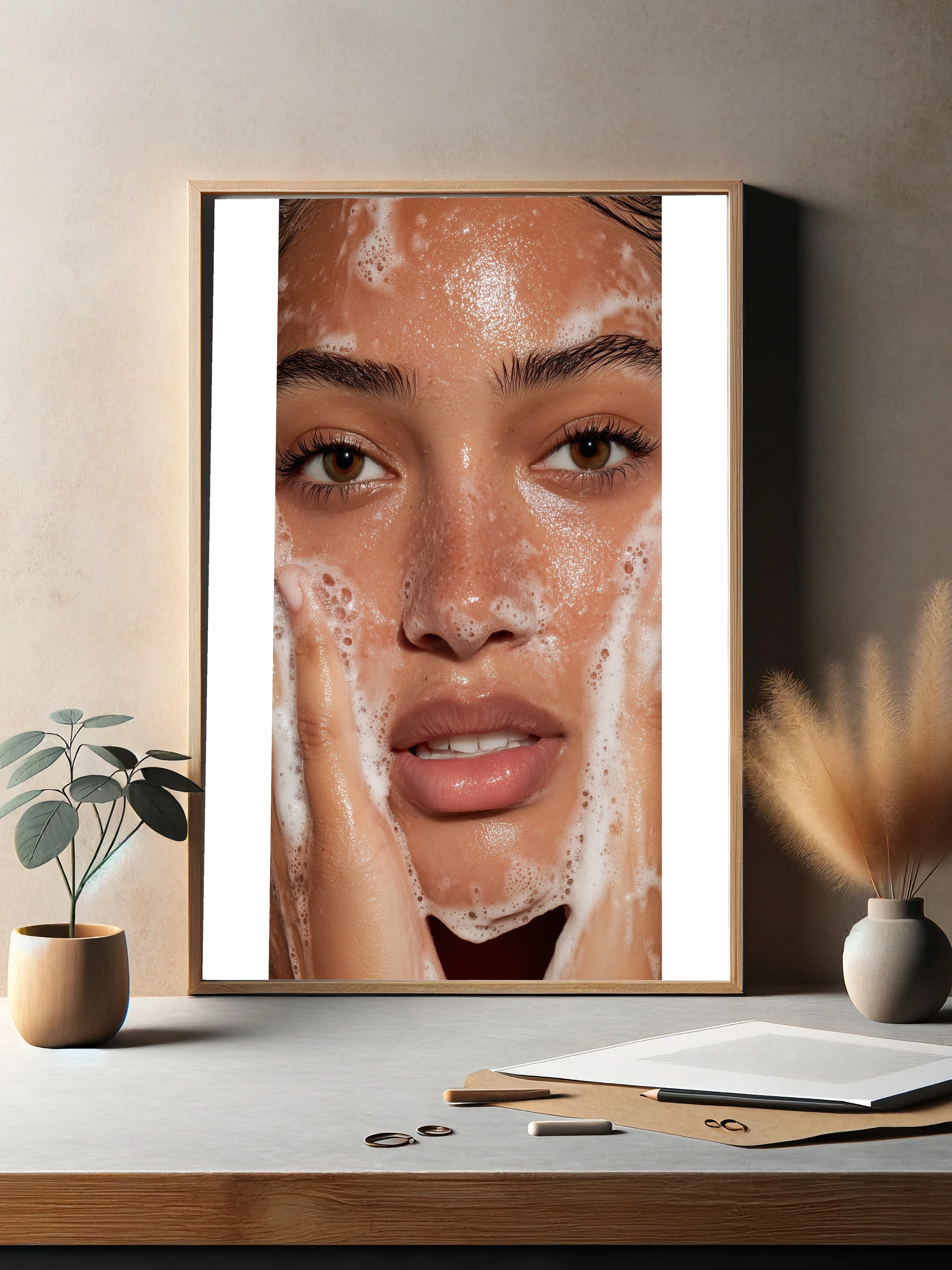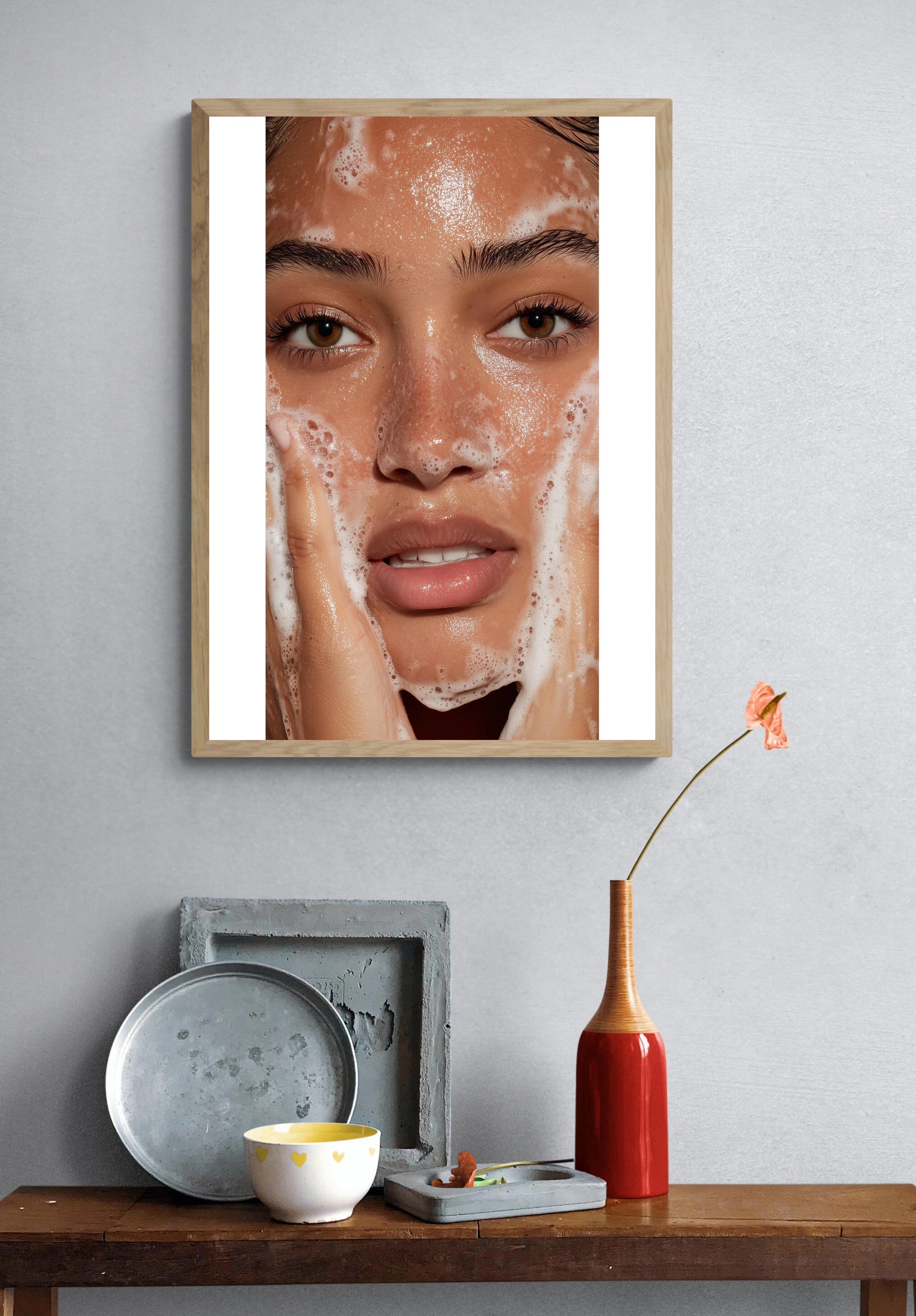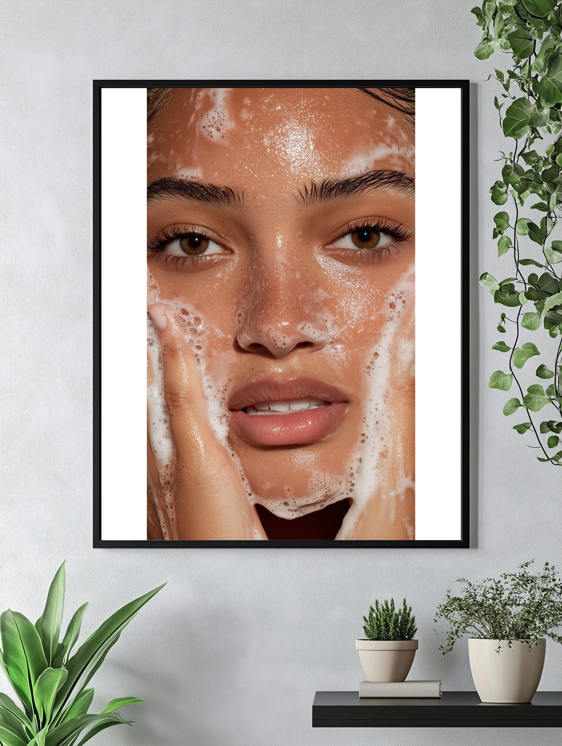 Погрузитесь в мир красоты и ухода с этим потрясающим постером, изображающим лицо молодой женщины, покрытое нежной пеной. Ее гладкая кожа сверкает, отражая свет, а выразительные глаза притягивают внимание. Легкие пузырьки мыла создают ощущение свежести и чистоты, подчеркивая важность ежедневного ухода за собой. Композиция акцентирует внимание на лице, создавая интимную атмосферу, которая вдохновляет на заботу о себе. Этот постер станет идеальным украшением для ванной комнаты или косметического уголка, добавляя нотку стиля и уюта. Он привлечет внимание молодежи и всех, кто ценит красоту и уход за собой.
