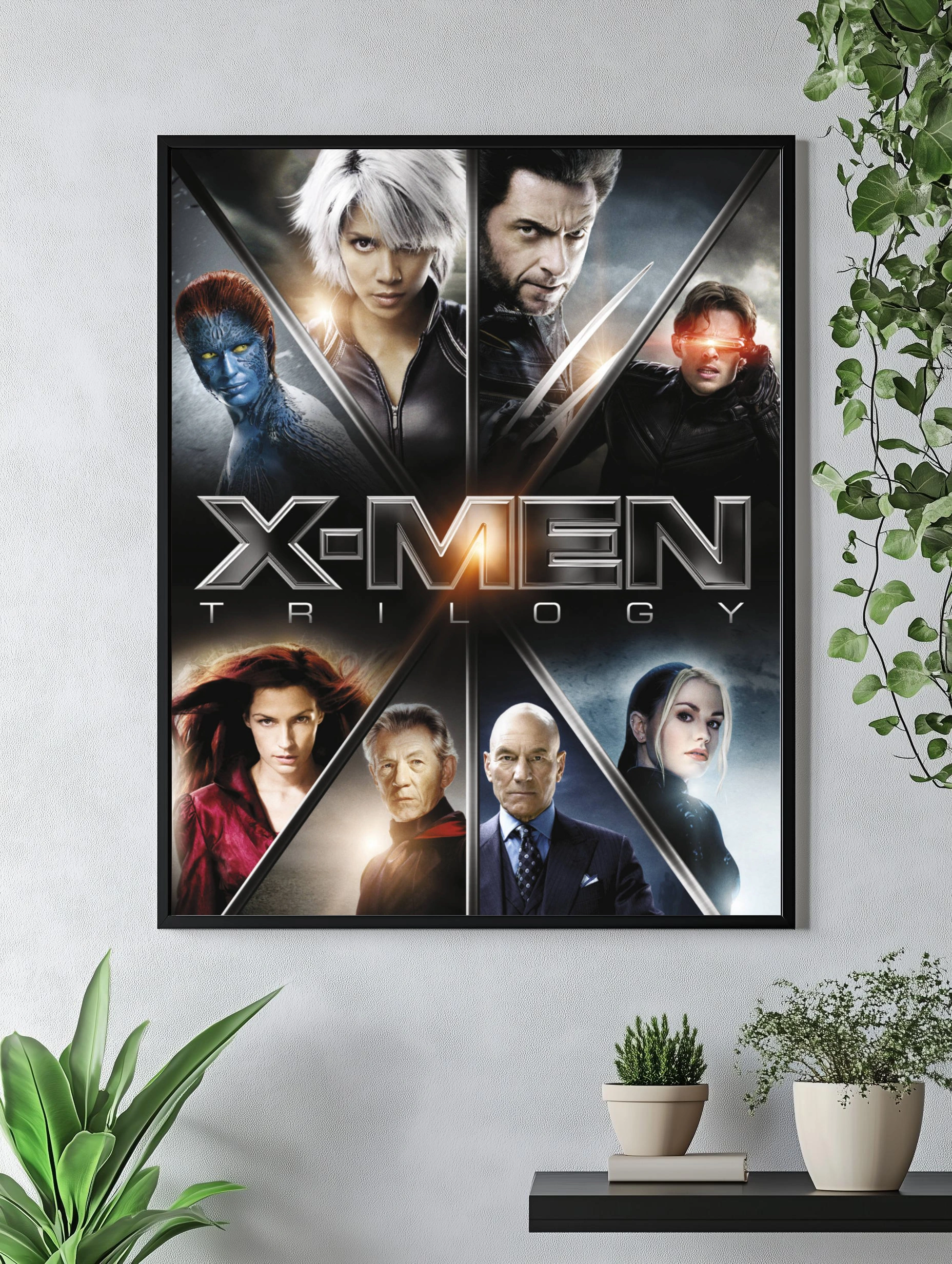 Этот интерьерный арт с изображением героев из культовой трилогии X-Men представляет собой художественный плакат с узнаваемыми персонажами: Росомаха, Мистик, Шторм, Профессор Ксавьер и Циклоп. Темные и мрачные оттенки с эффектами света создают напряженное и динамичное настроение. Идеально для поклонников современного искусства для стен и декоративных картин с принтом о любимых супергероях.