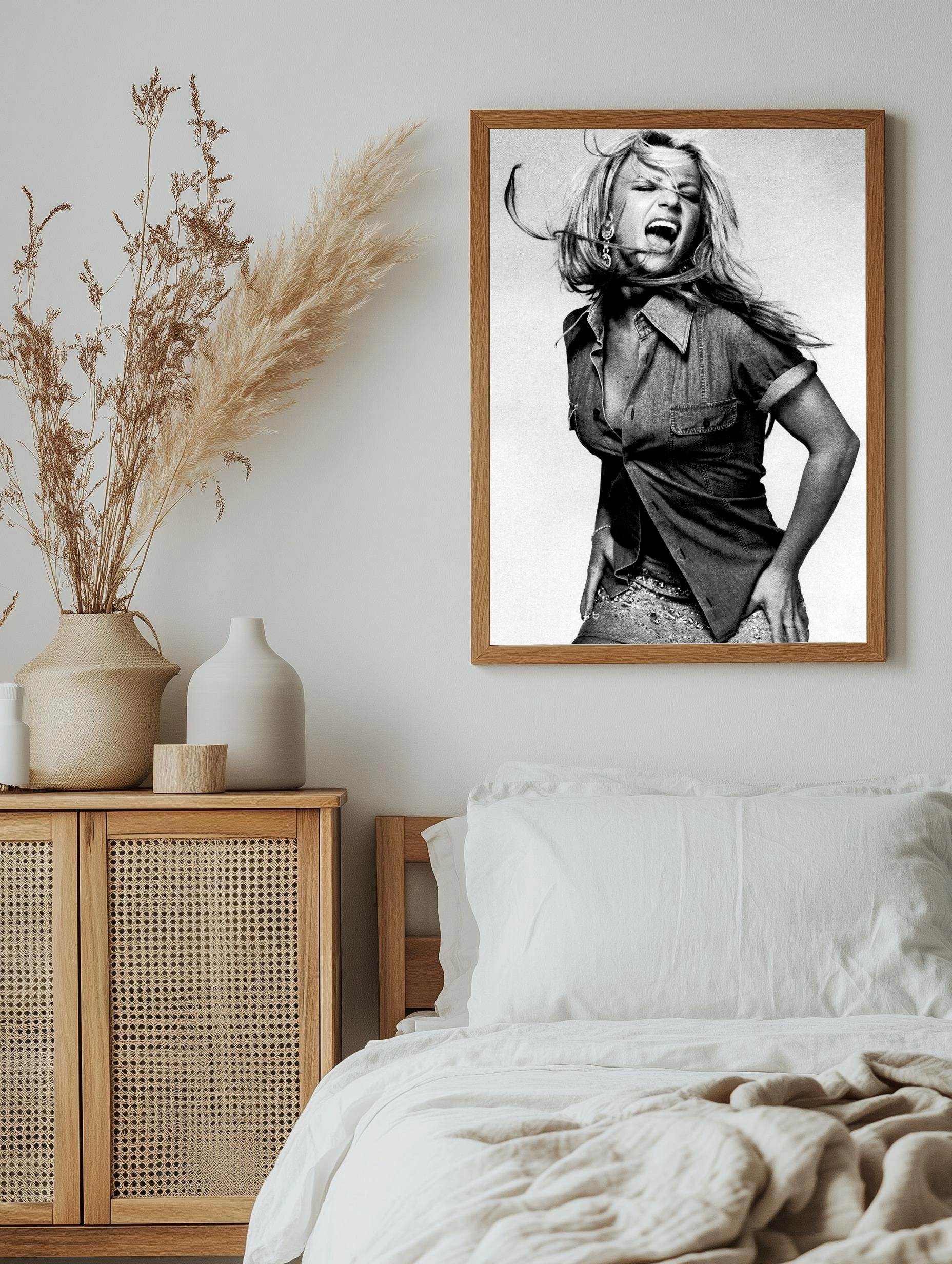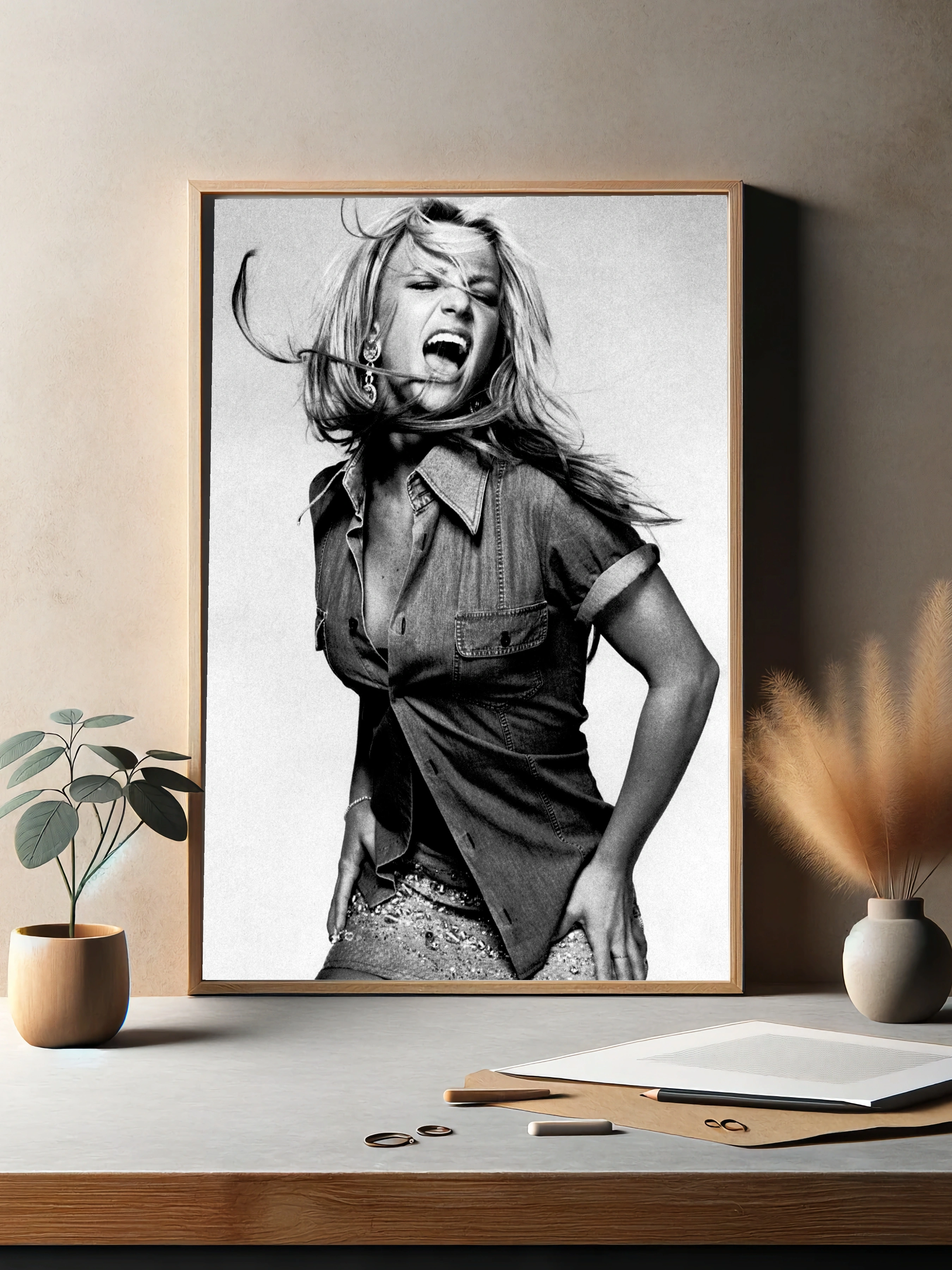 На изображении представлен известный музыкальный дуэт Modern Talking в классическом стиле 80-х. Эстетика постера передает дух ретро с модой того времени: свободные прически, яркая одежда и кожаная куртка. Такой художественный плакат станет уникальным декоративным элементом для гостиной или офиса, создавая стильный декор стен с атмосферой ностальгии и современного искусства для стен.